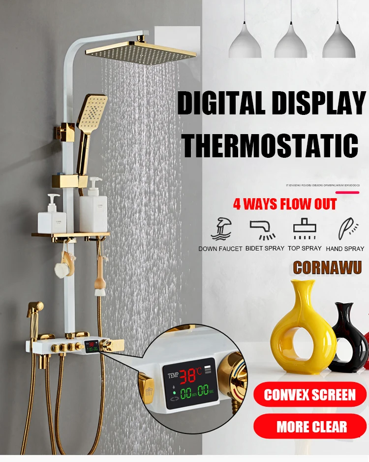Золотой цифровой набор душевой системы для ванной комнаты Горячий Холодный Смеситель термостатический дождевой смеситель для душа настенное крепление спа дождевой Золотой Grifo Kraan
