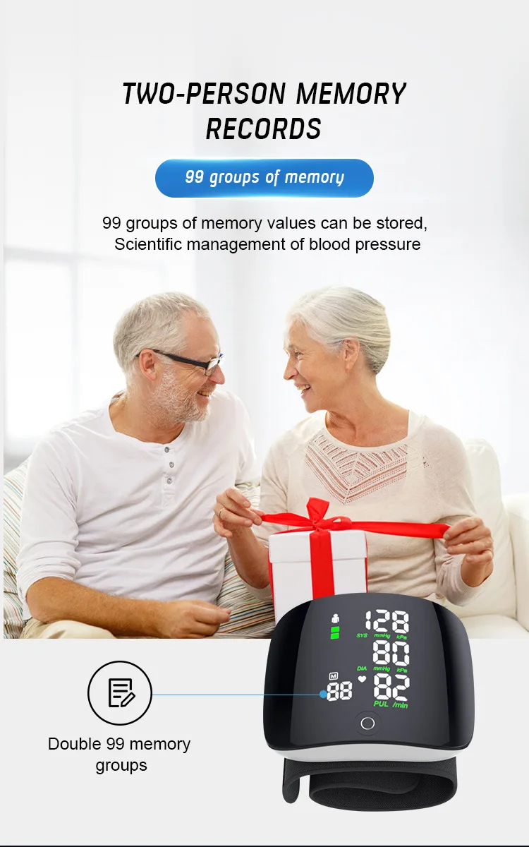 Перезаряжаемый цифровой монитор кровяного давления на запястье цифровой тенсиометр Сфигмоманометр два человека 99 хранение данных