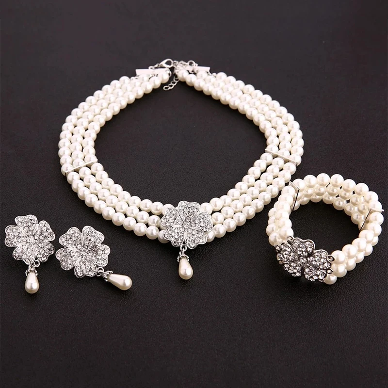 1920s Women Flapper Dress Cosplay Accessories Set GATSBY CHARLESTON Pearl Necklace Earings Bracelet 3pcs Set for Wedding Party