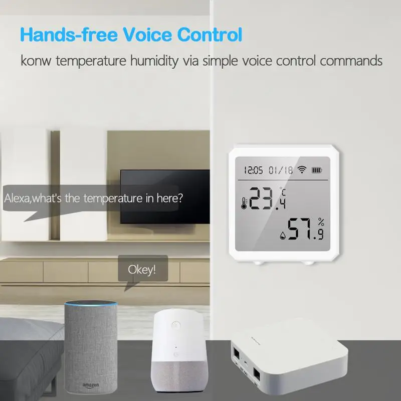 AUBESS датчик температуры и влажности комнатный гигрометр термометр детектор с функцией сигнализации Поддержка интеллектуального управления голосом