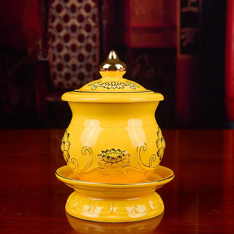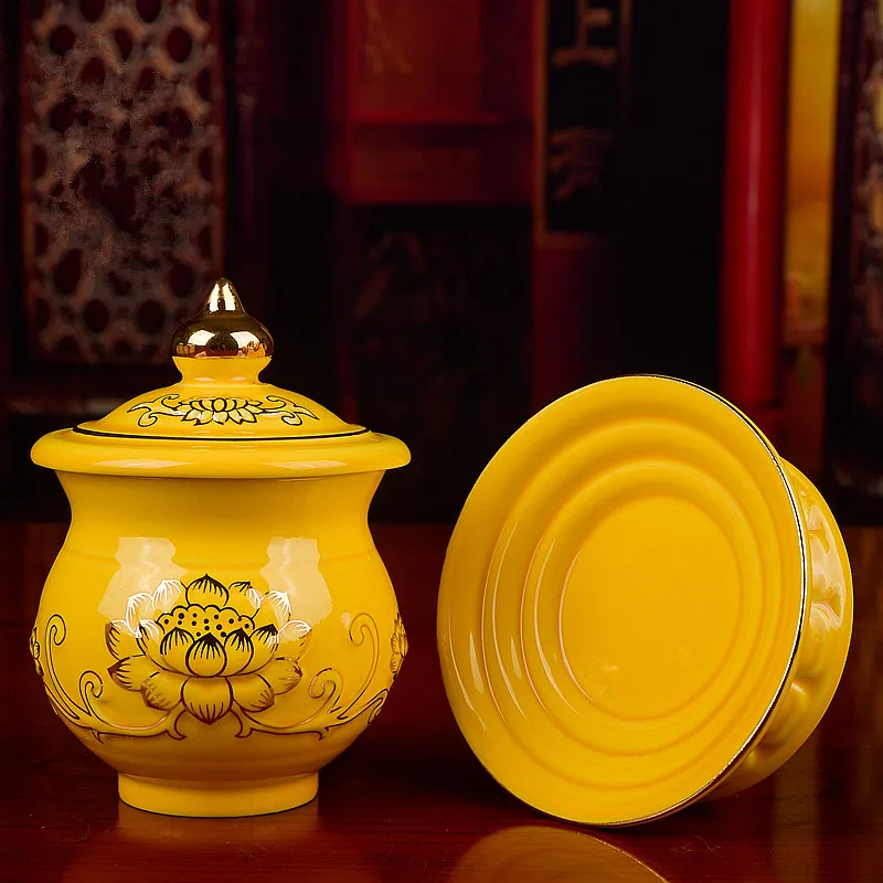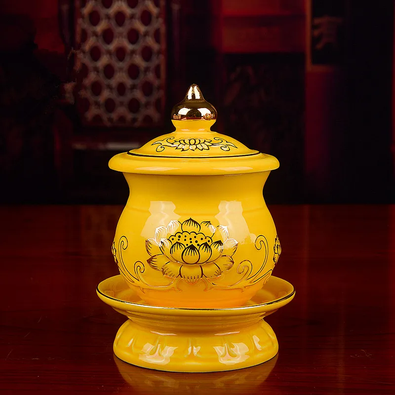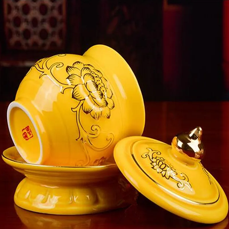 3 размера предлагается желтая керамика буддийский прозрачный золотой лотос узор принесенный в жизнь Тибетский положить декоративные чашки/миски