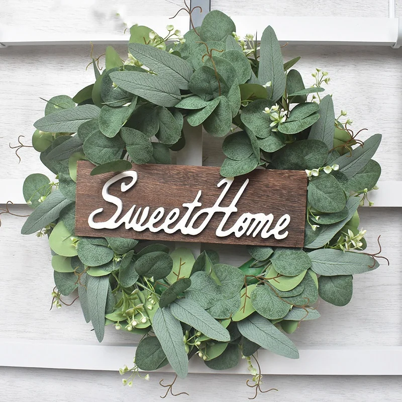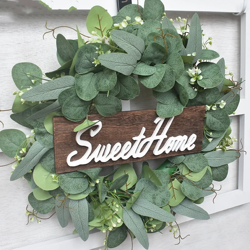 Акция! Домашнее милое украшение с гирляндой, деревянная подвесная вывеска с искусственным эвкалиптом, украшение для дома