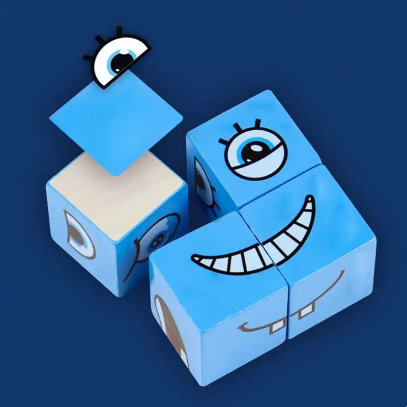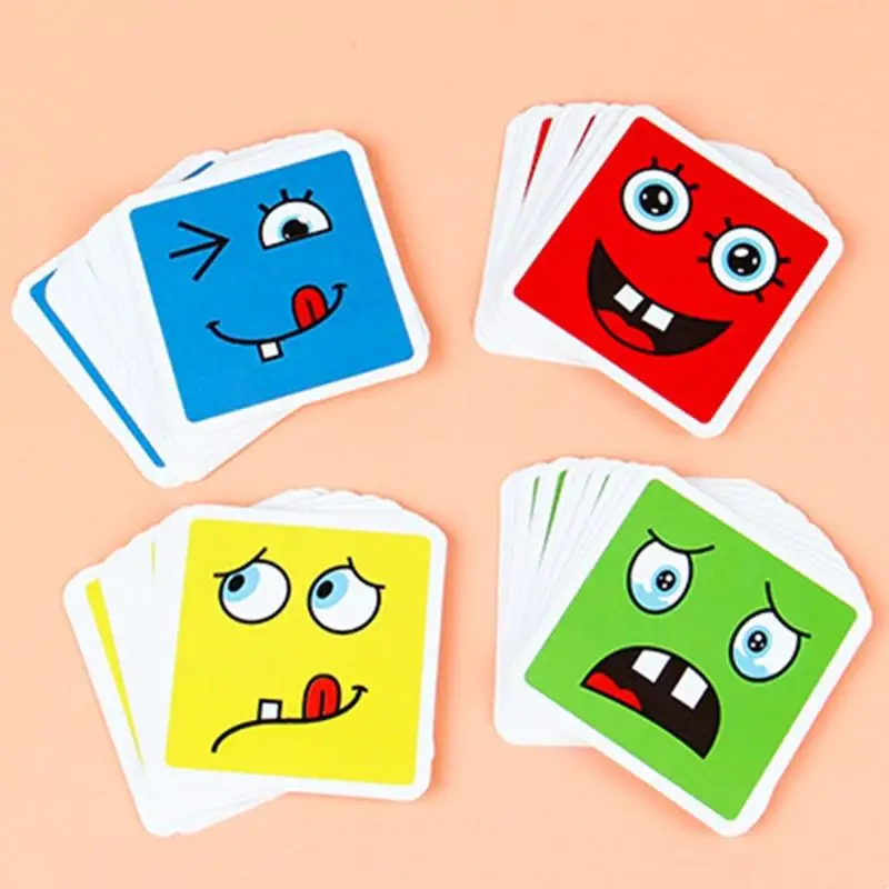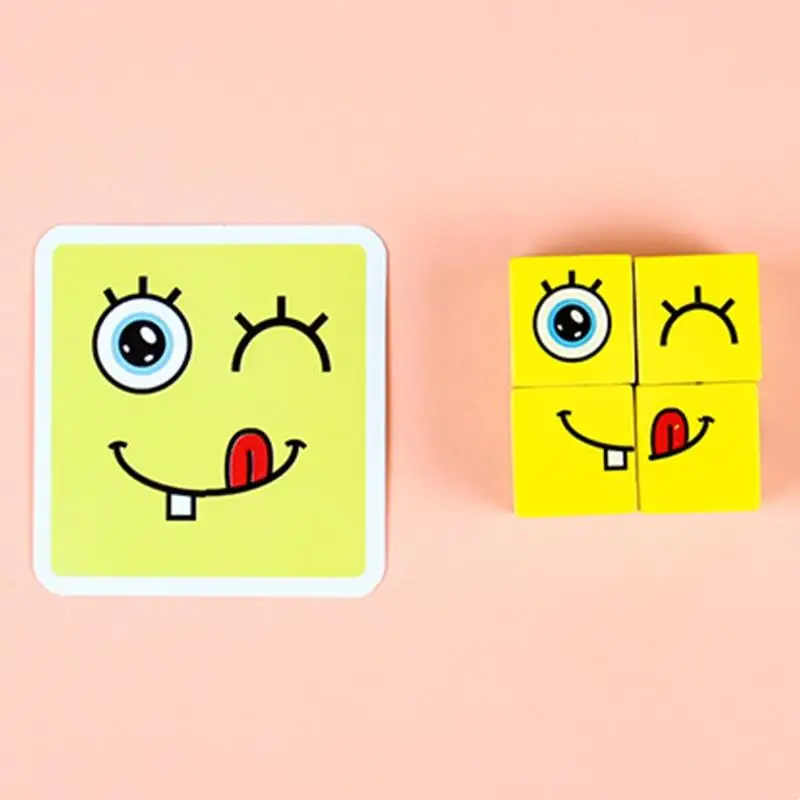 16 деревянных печатных блоков с 64 выражениями, чтобы стимулировать интерес детей к игре.