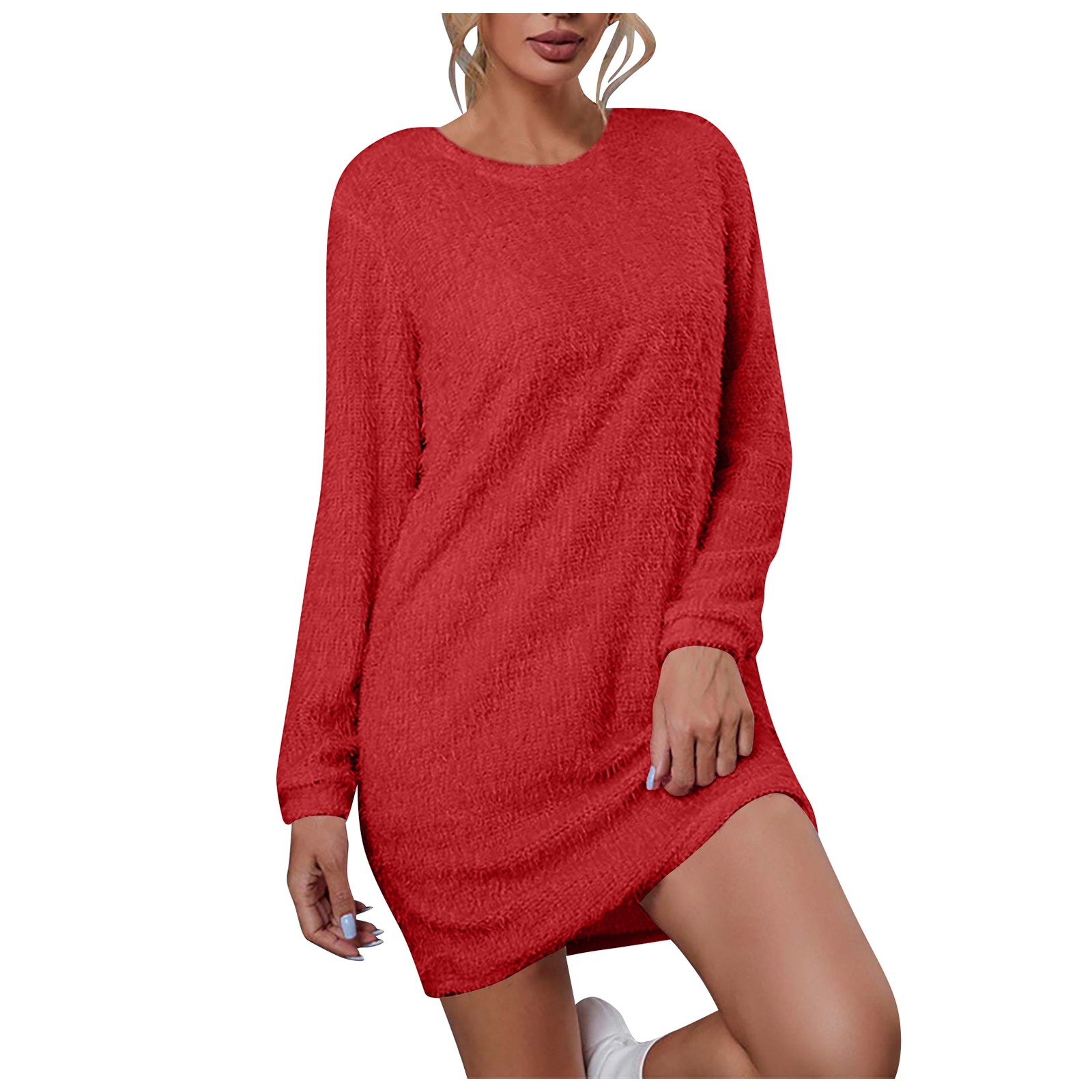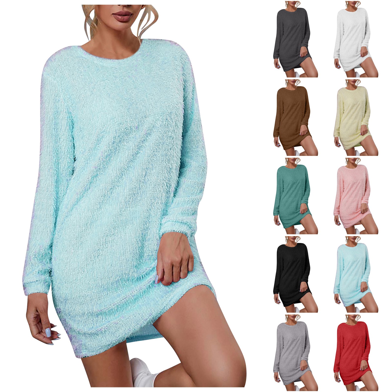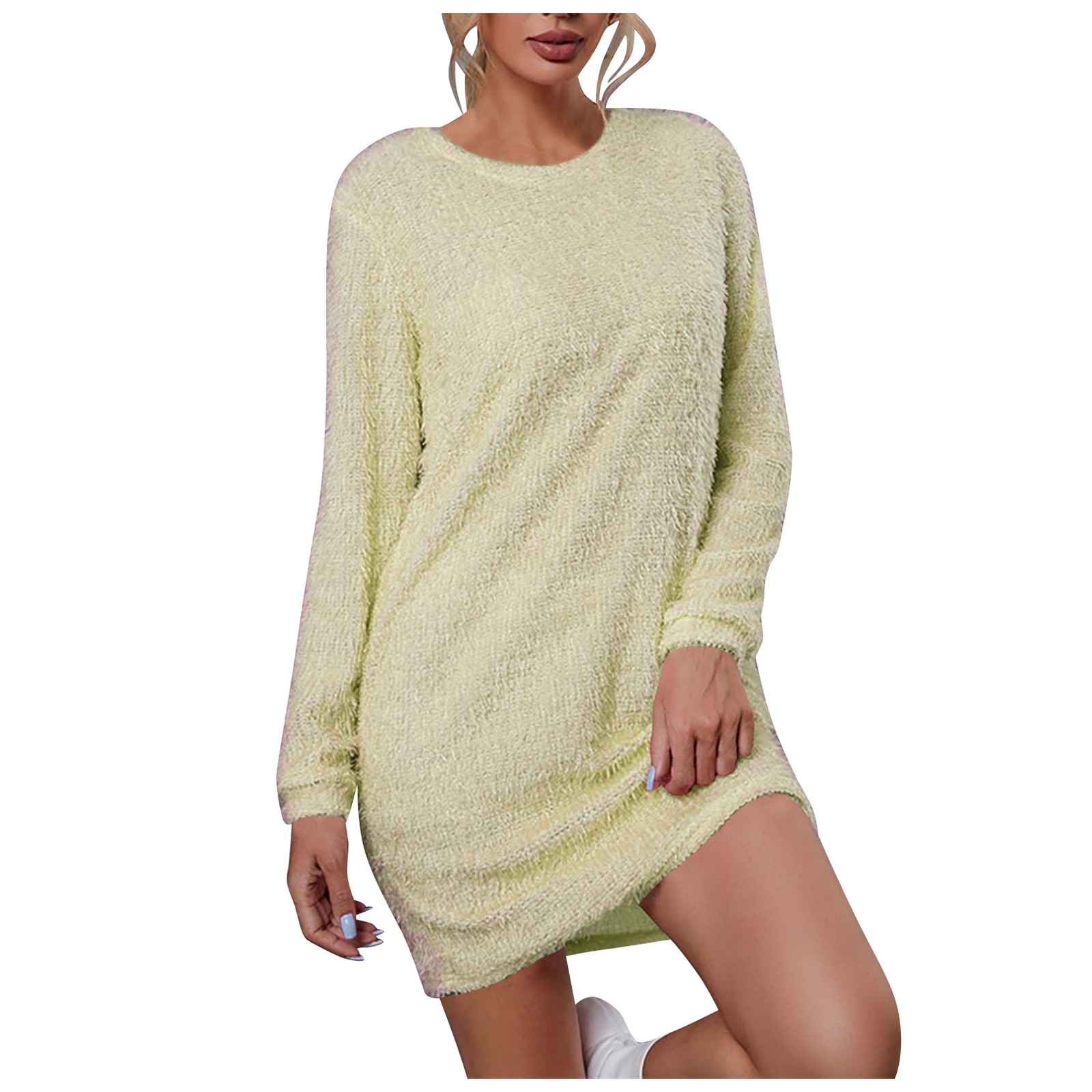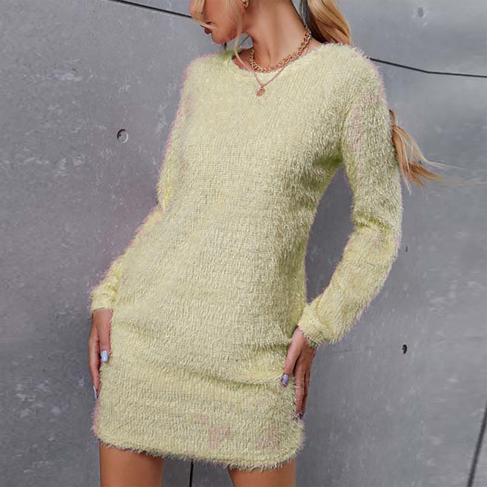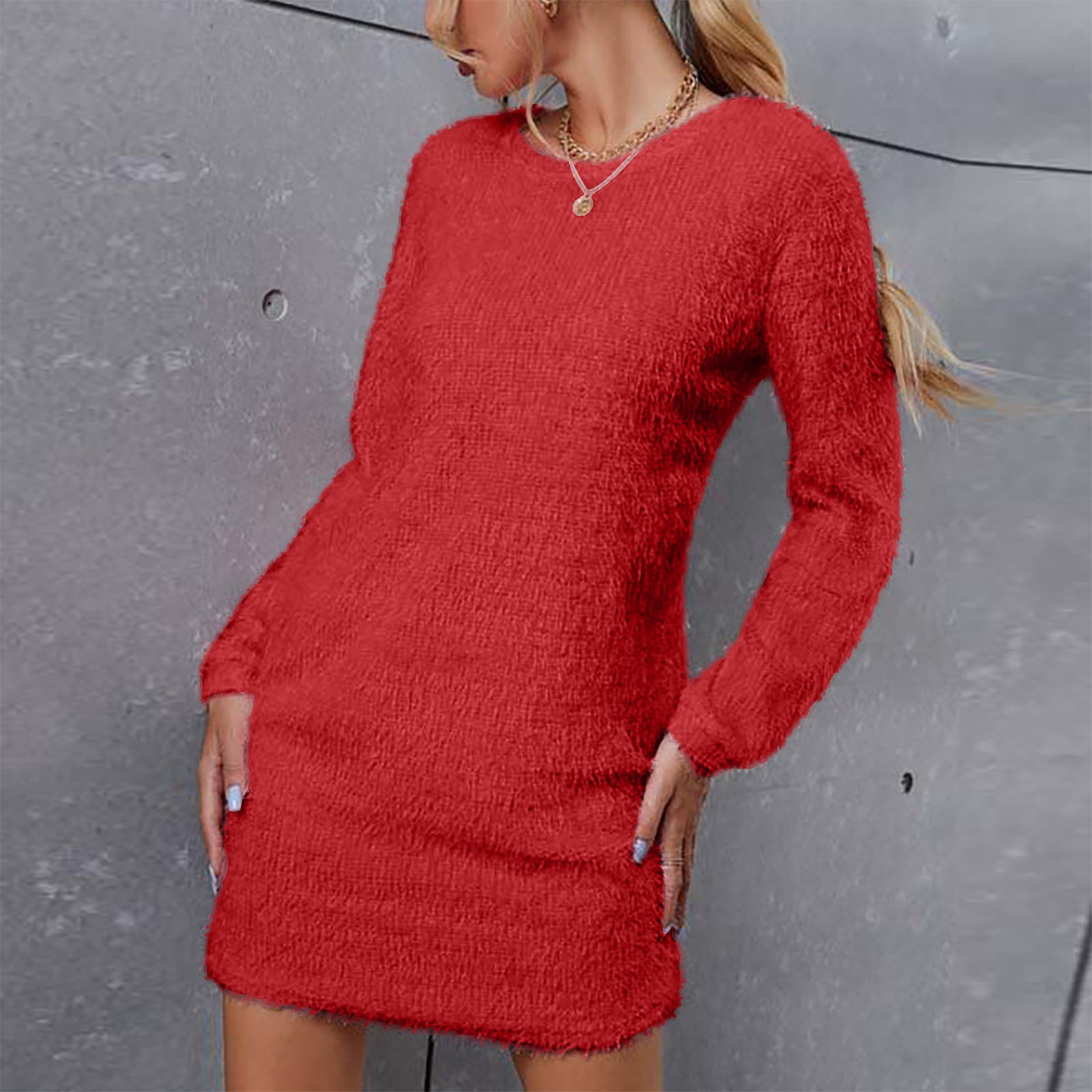 Женское модное трикотажное платье-свитер с круглым вырезом и длинным рукавом