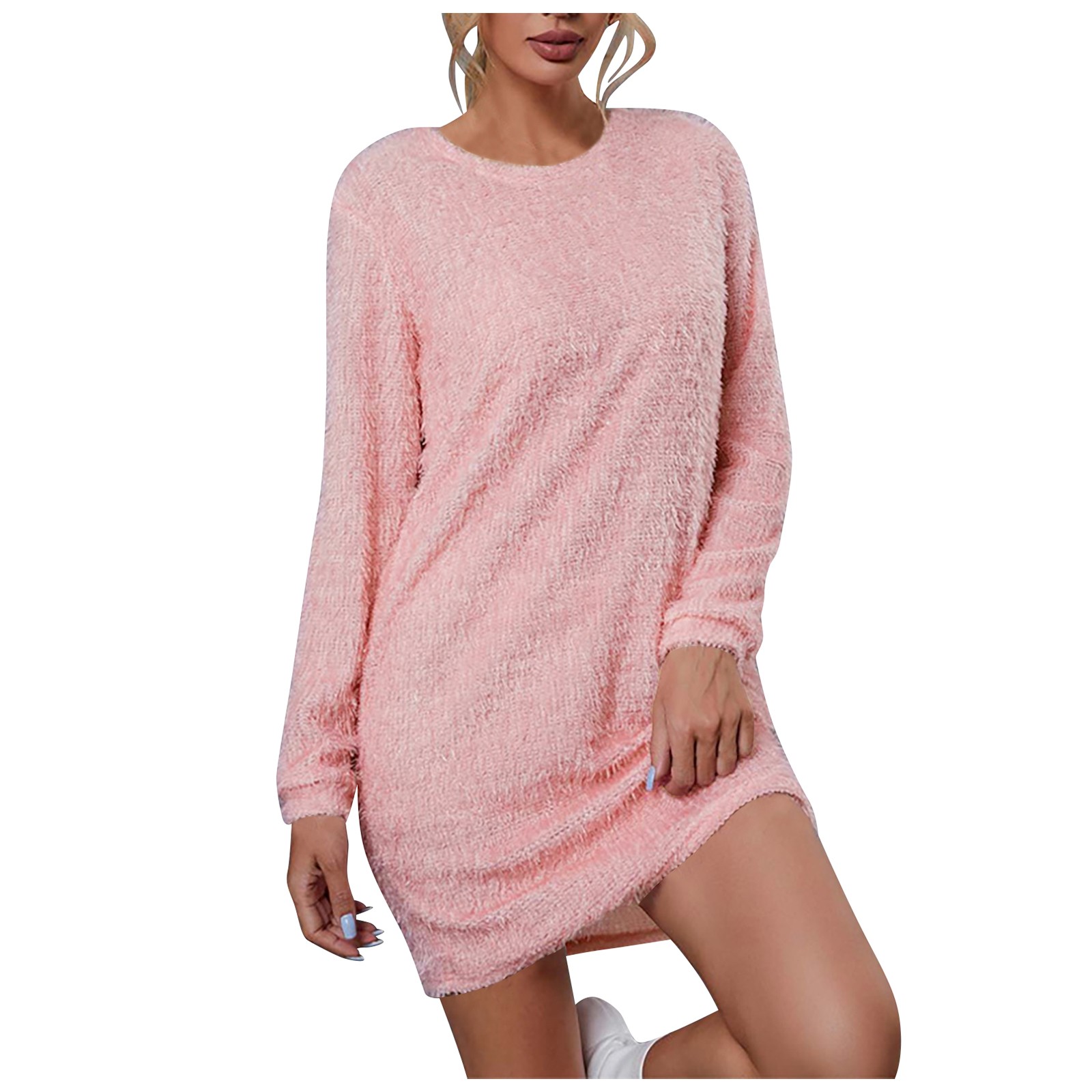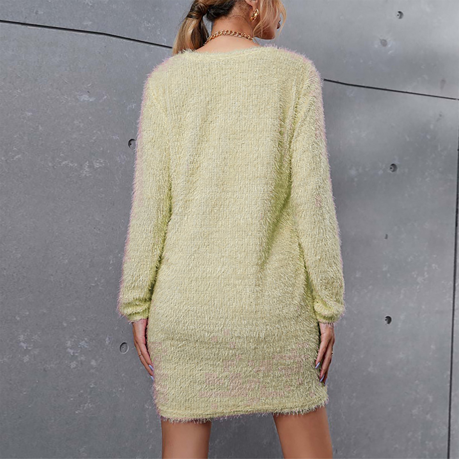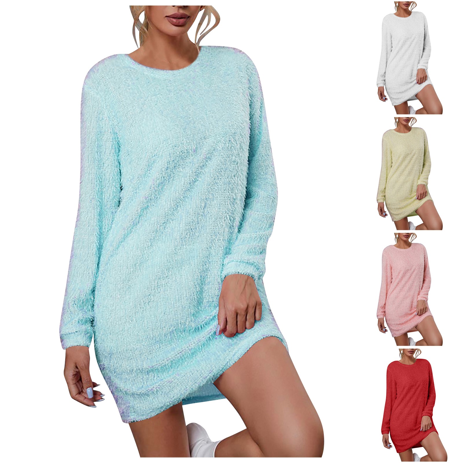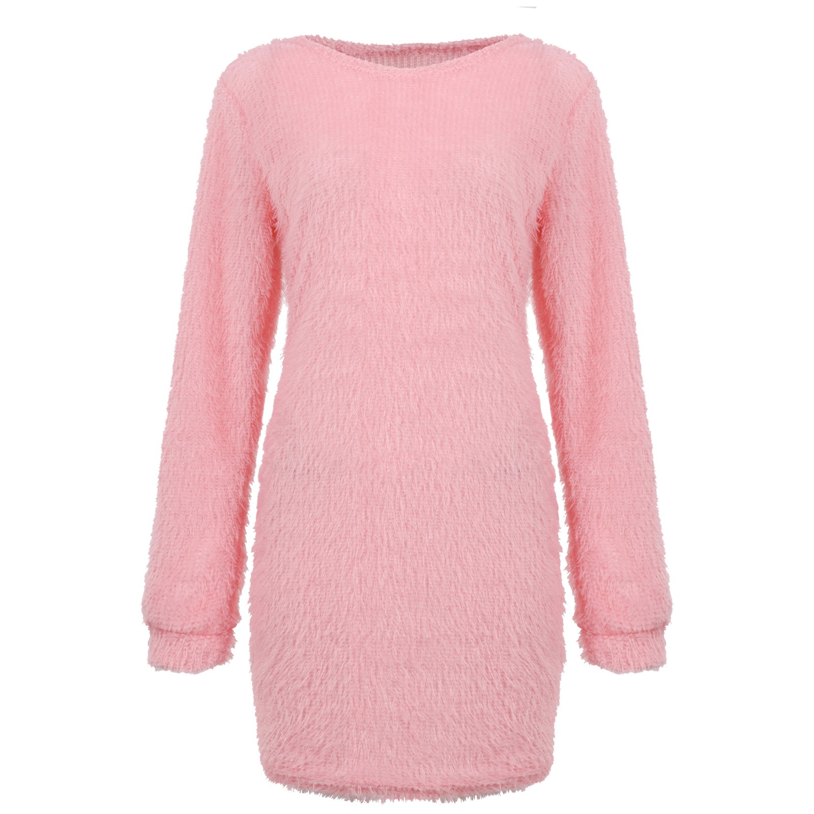 Женское модное трикотажное платье-свитер с круглым вырезом и длинным рукавом