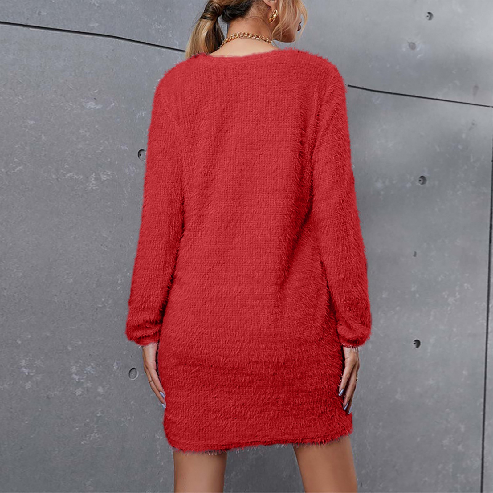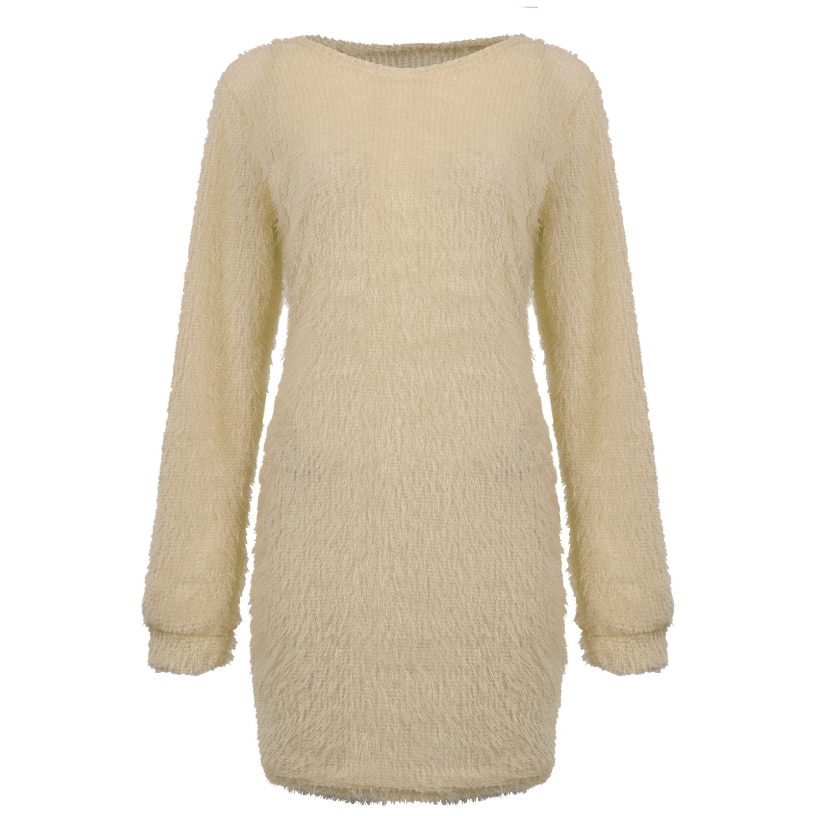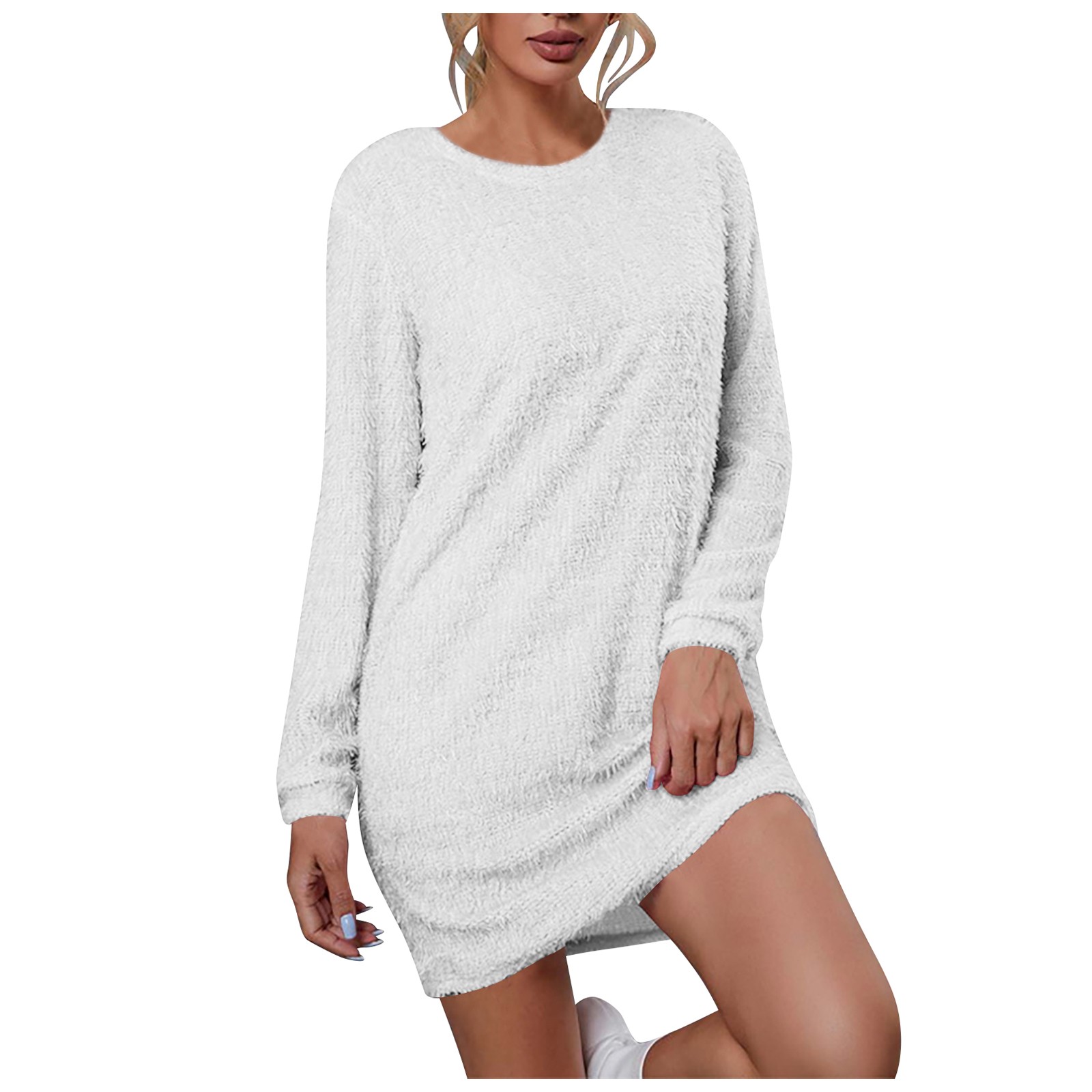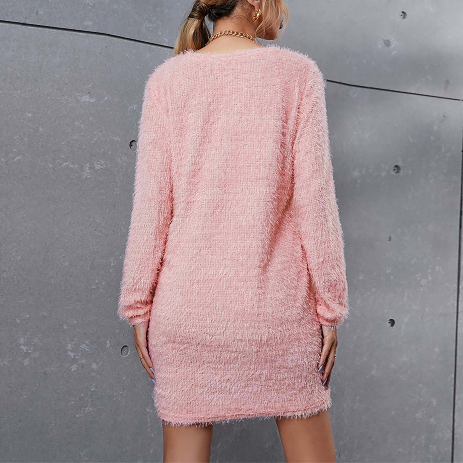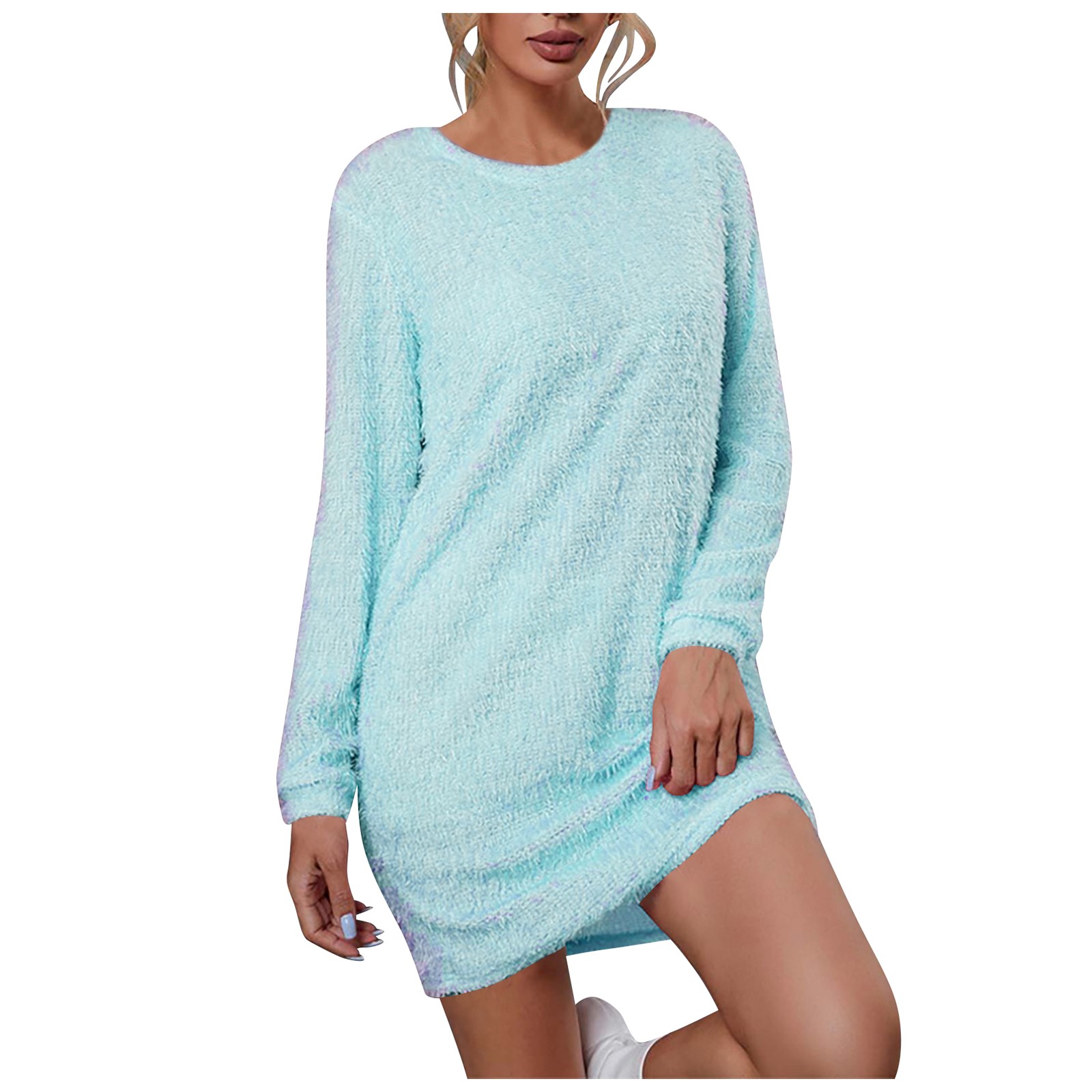 Женское модное трикотажное платье-свитер с круглым вырезом и длинным рукавом