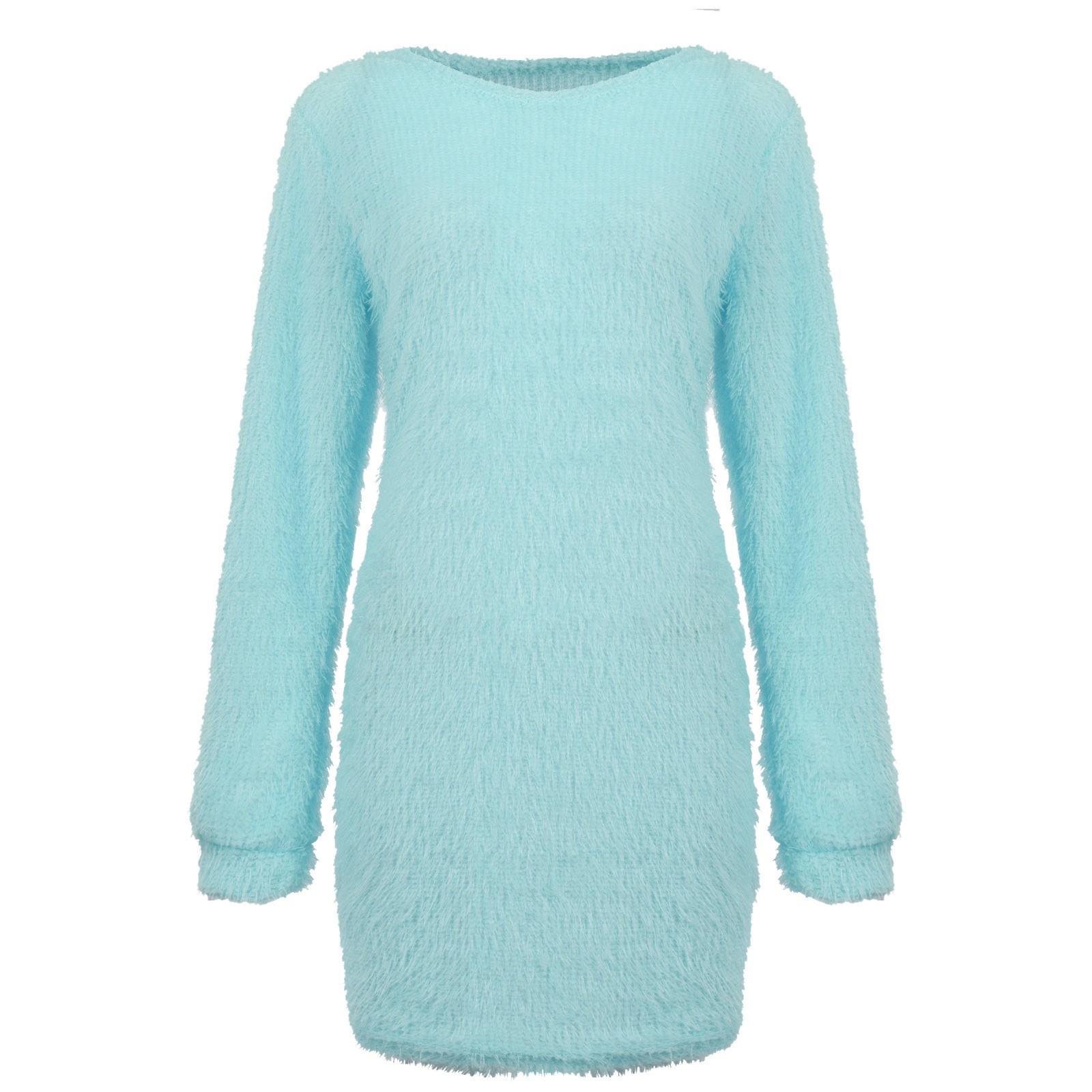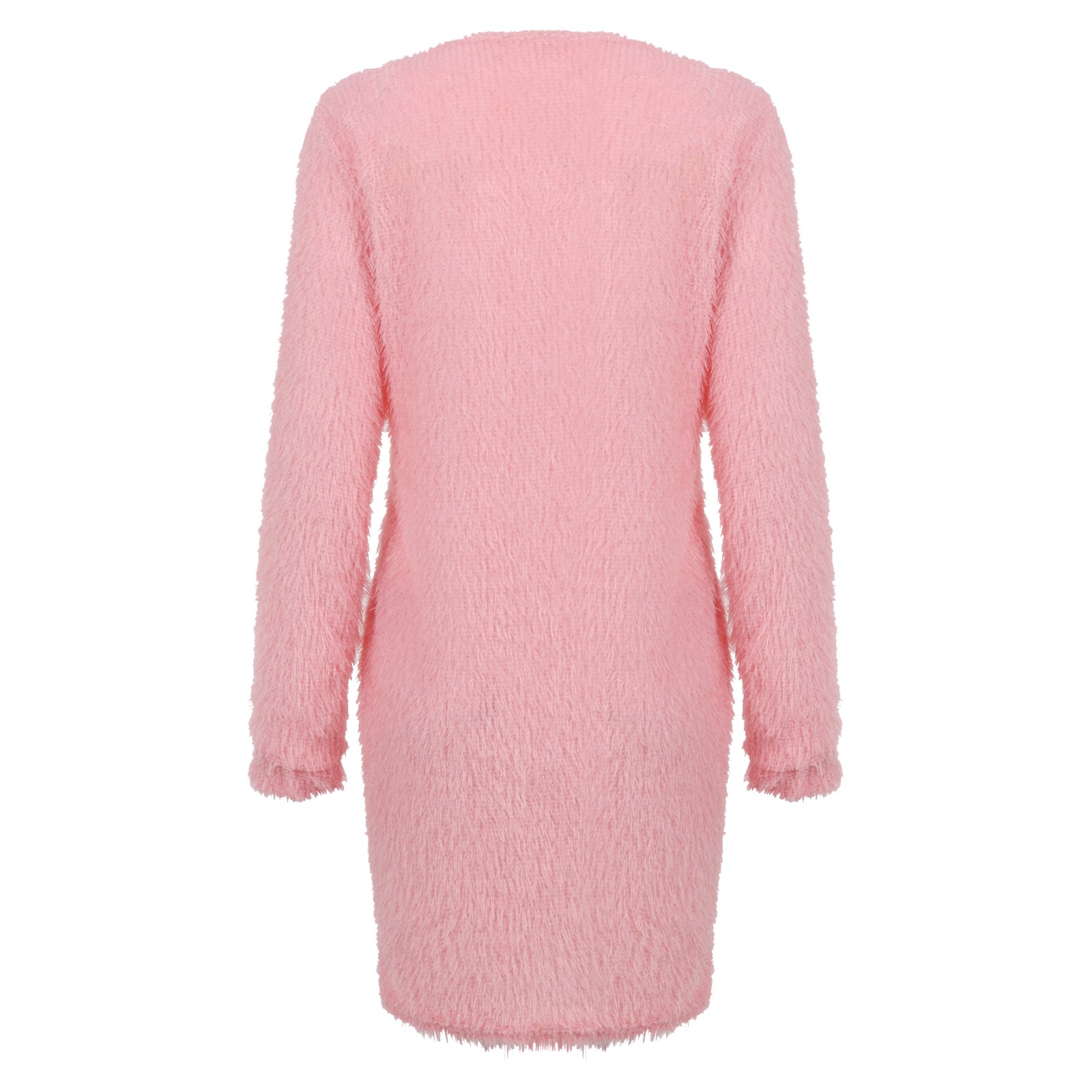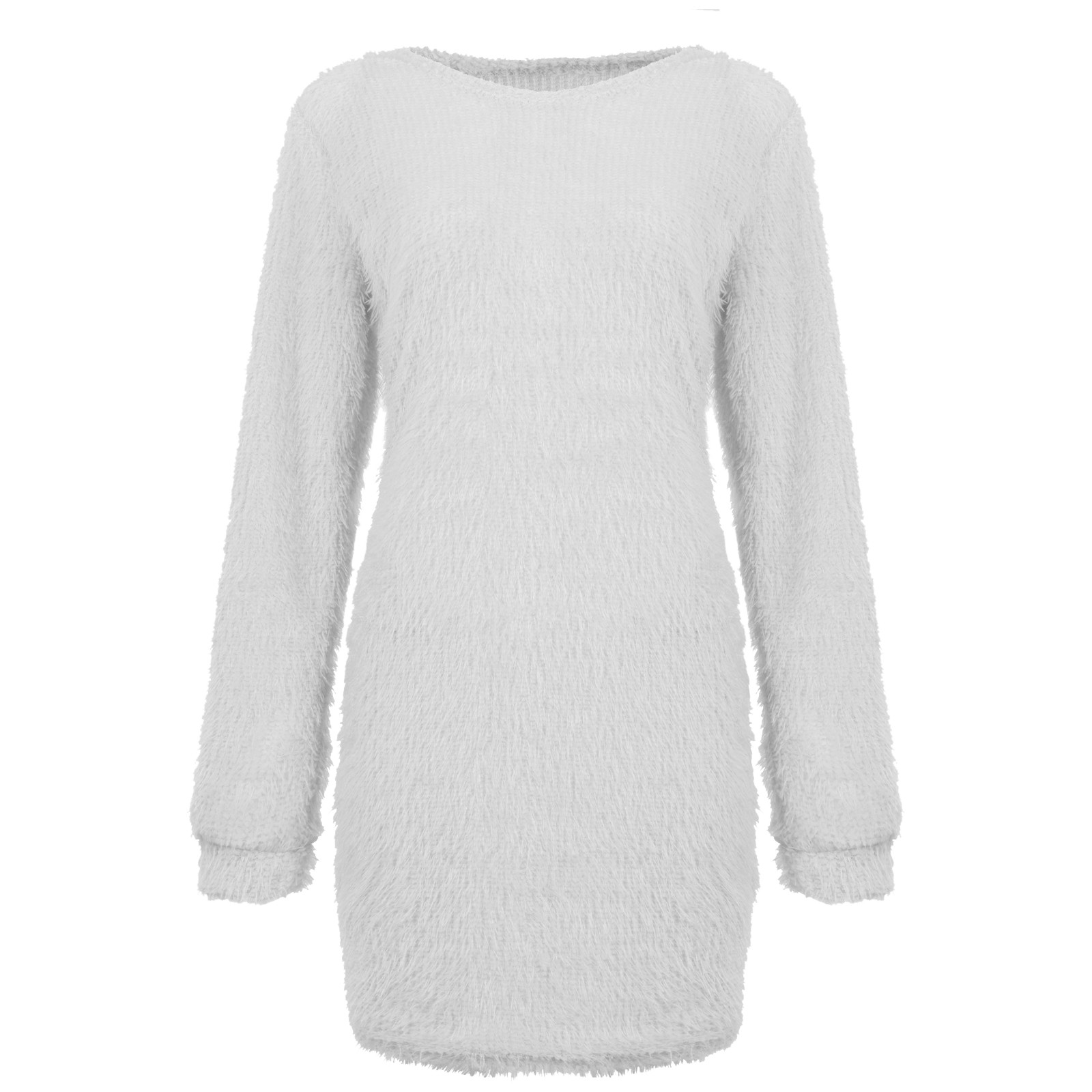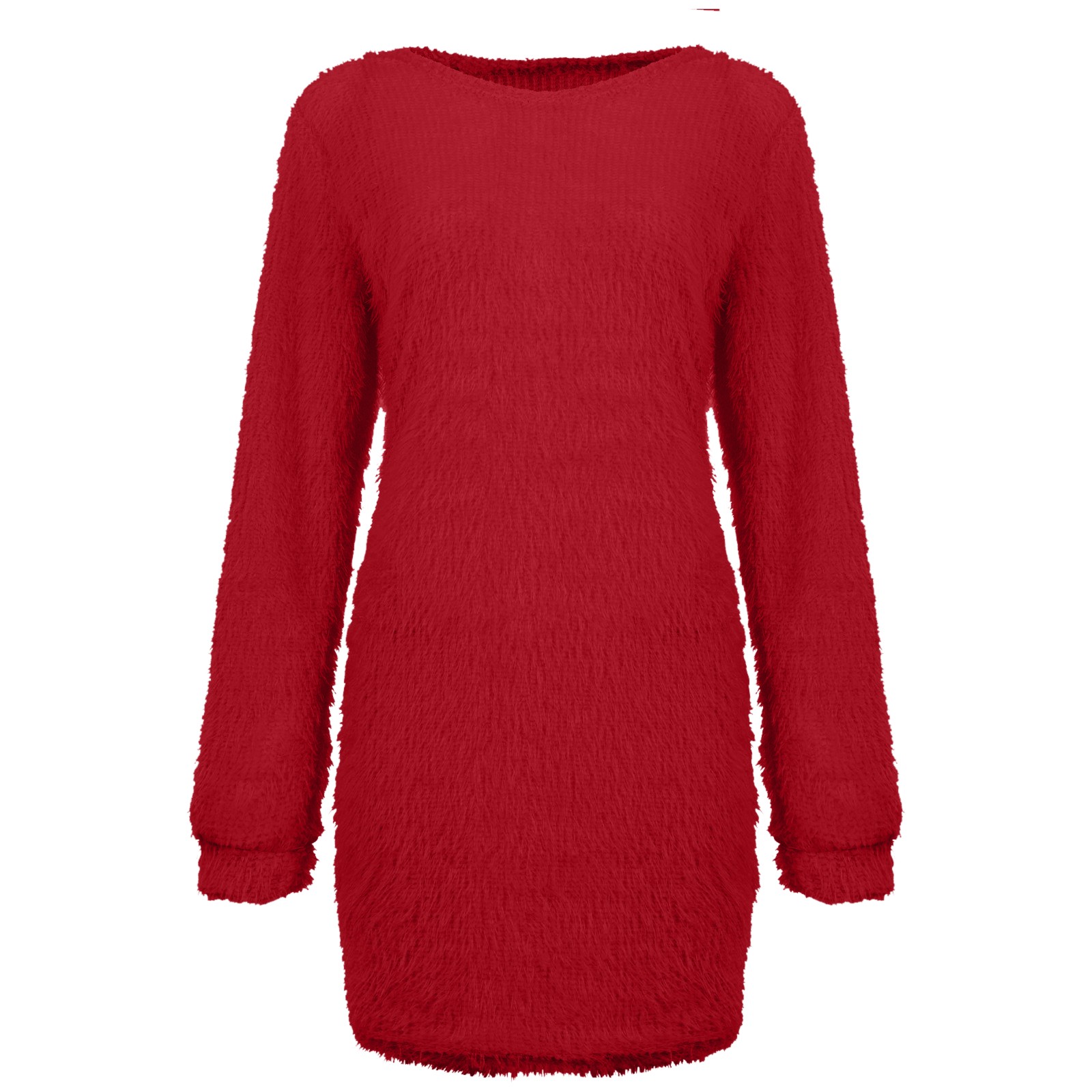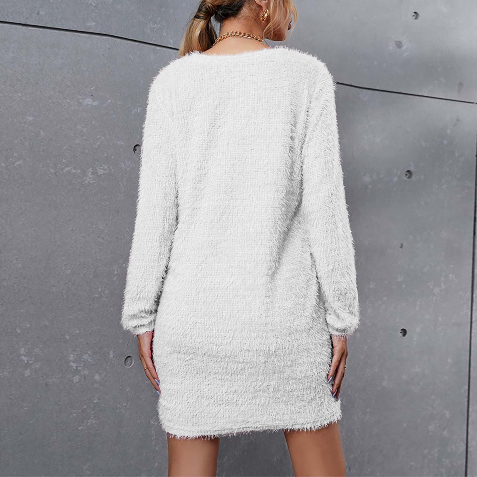 Женское модное трикотажное платье-свитер с круглым вырезом и длинным рукавом