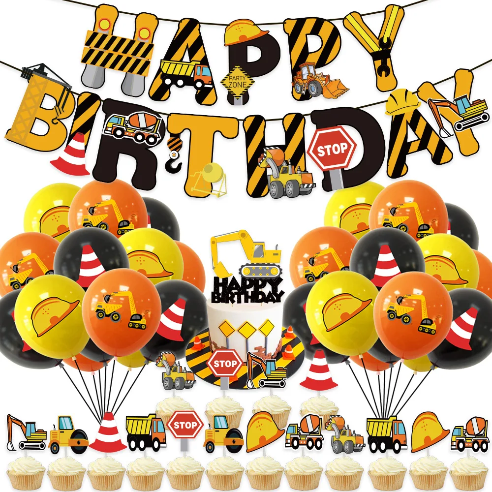 Тема строительства одноразовая посуда бумажные тарелки и стаканы салфетки экскаваторы бульдозеры самосвал товары для дня рождения