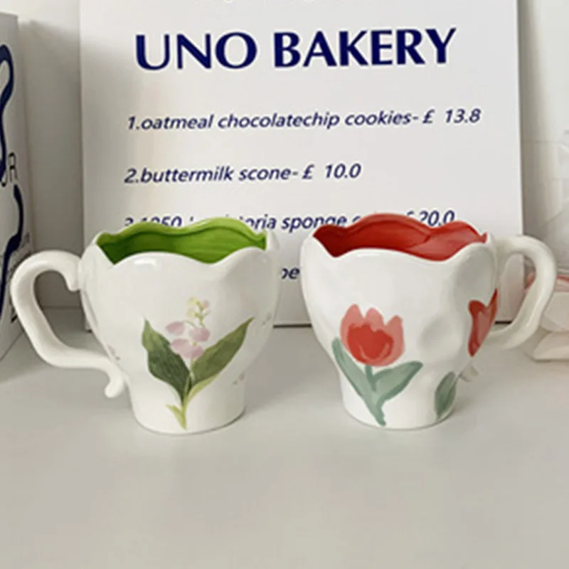 Стиль: кофейные кружки с ручной росписью цветами и ручкой для ушей