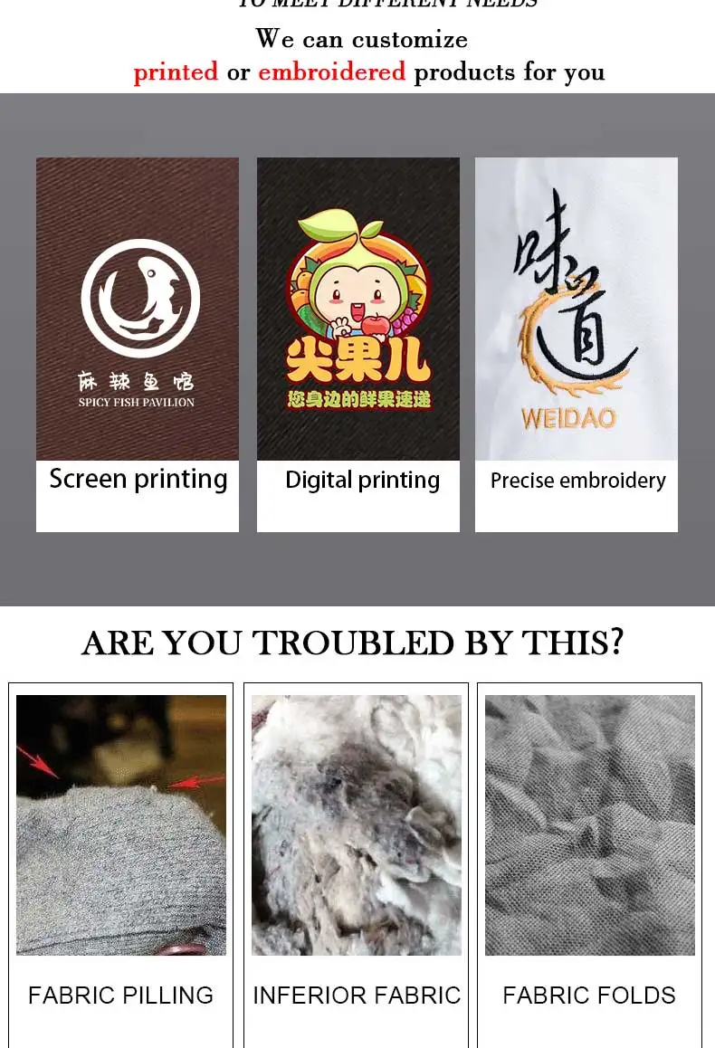 Мы можем настроить логотип вашей компании или текстовый узор на фартуке, поддержку вышивки или печати.