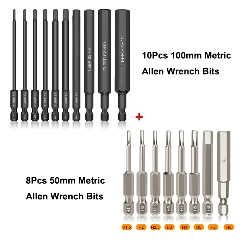 18 шт. 50 мм 100 мм шестигранный ключ набор сверл метрический шестигранный набор магнитных шестигранных отверток торцевые биты инструмент