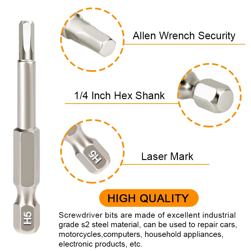 1. Набор шестигранных бит изготовлен из легированной стали s2, твердость может достигать HRC60 градусов.