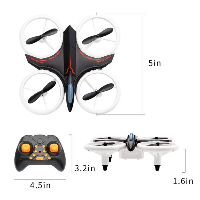 В комплект входит: 1 мини-Дрон 1 пульт дистанционного управления 2,4G 1 отвертка 2X лезвие 1 Руководство пользователя
