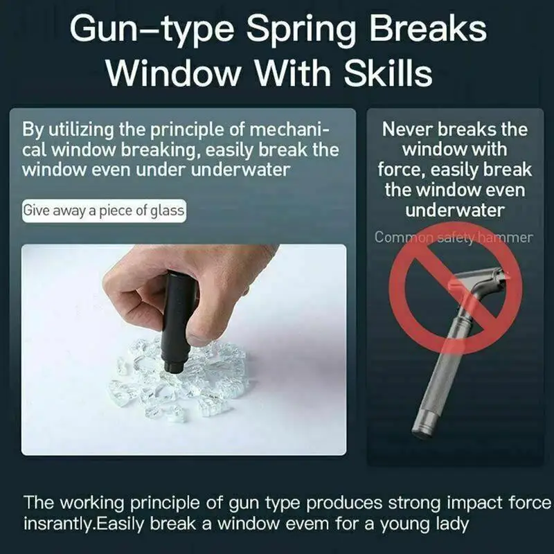 The clever force breaks the window, the gun-type spring design, the gun-type working principle, instantly produces a strong impact