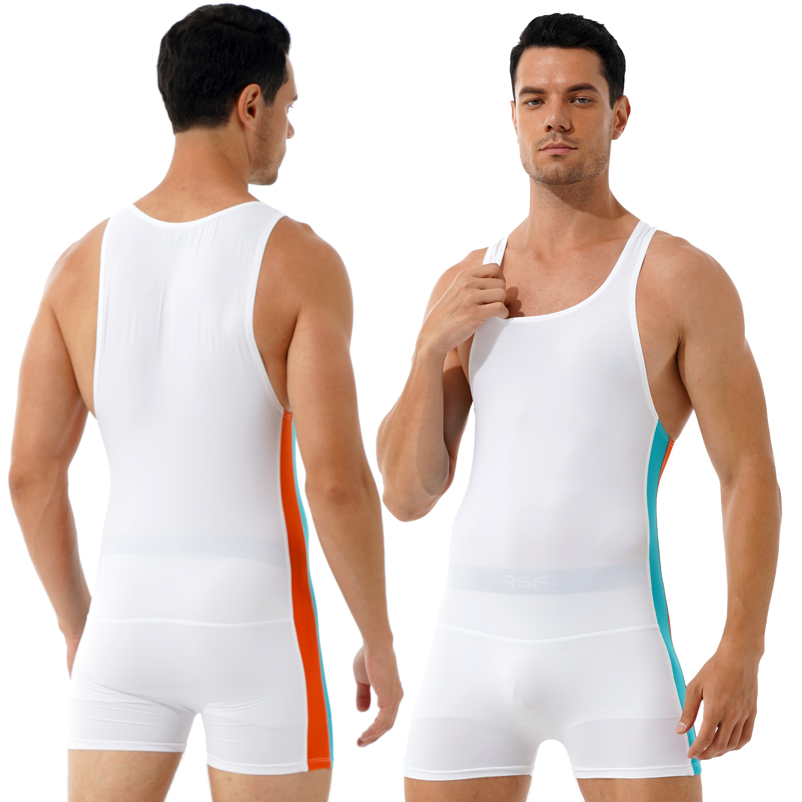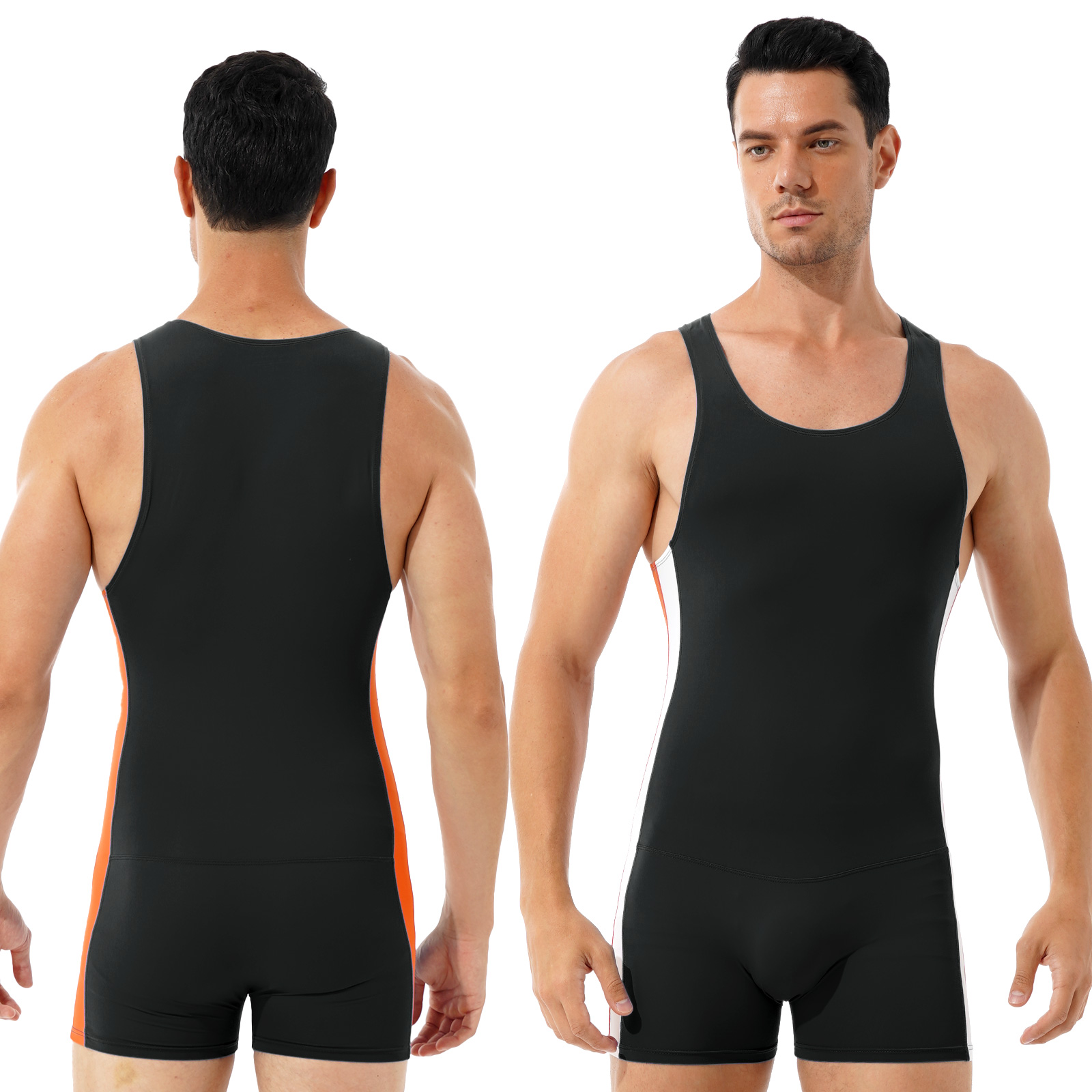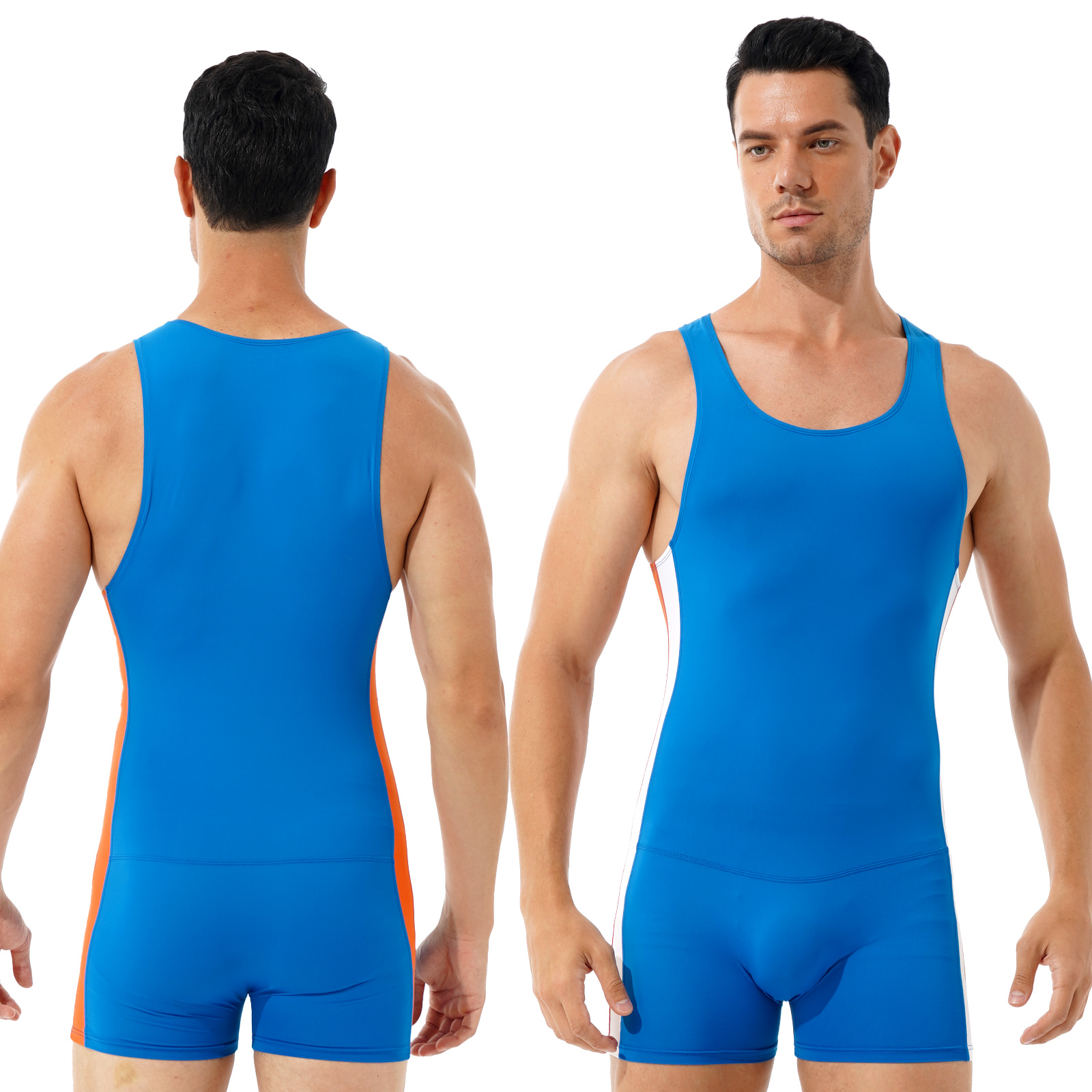 Мужской спортивный Облегающий комбинезон в контрастную полоску с круглым вырезом без рукавов.