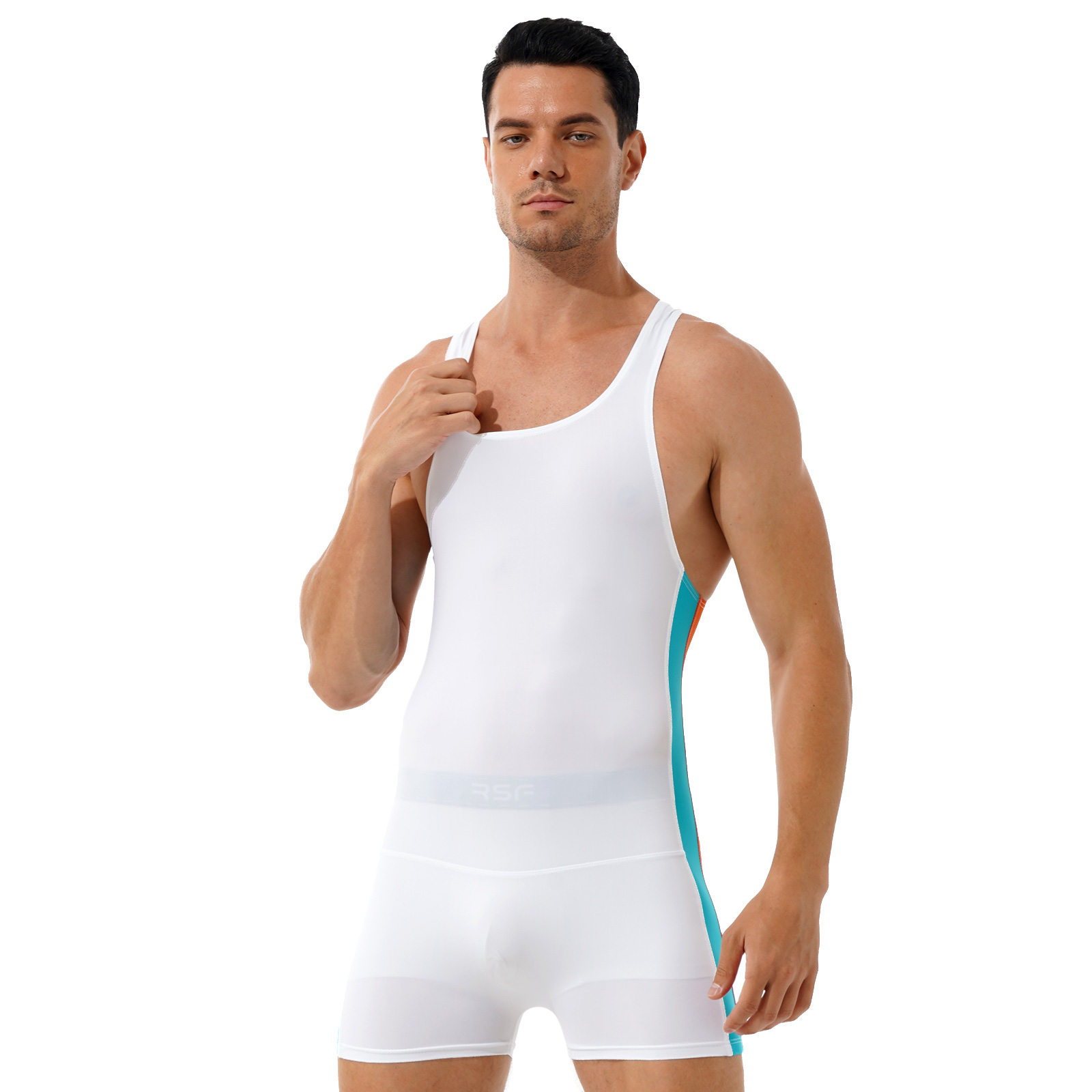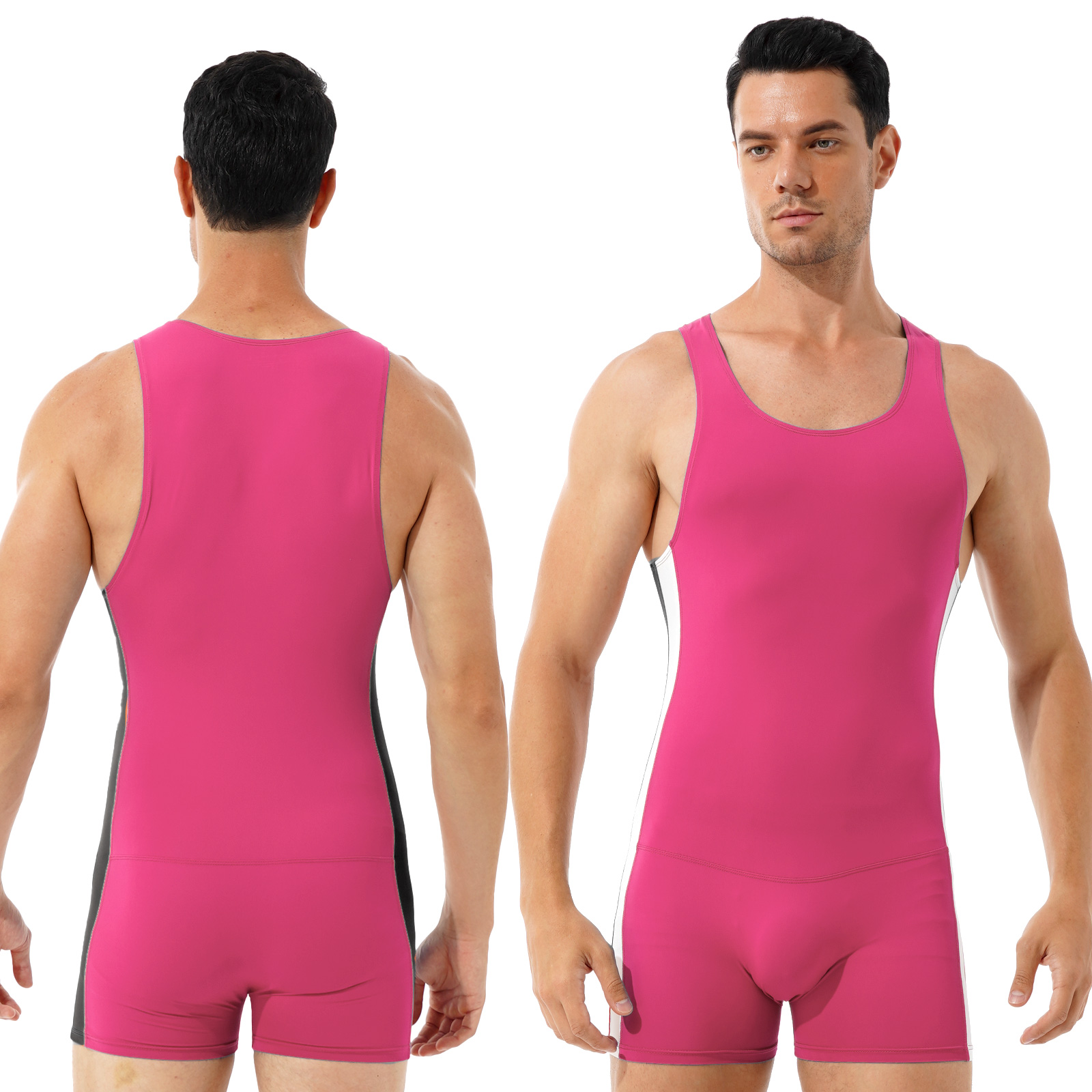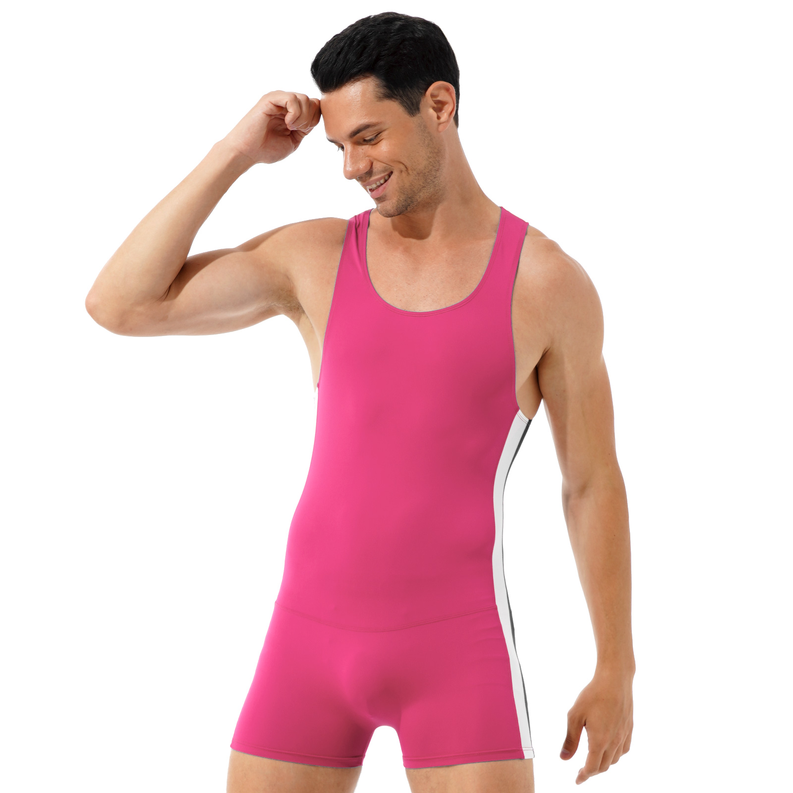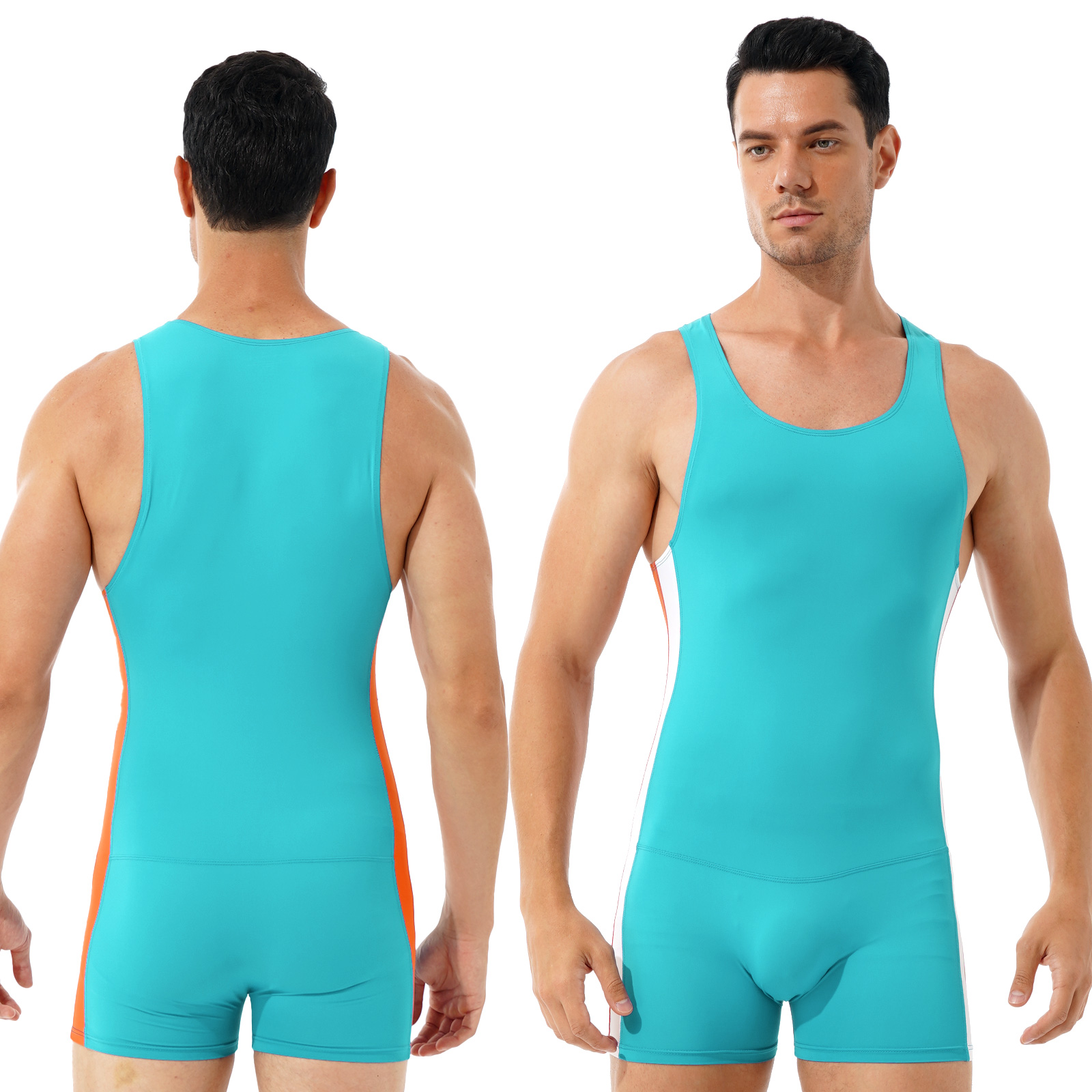 Мужской спортивный Облегающий комбинезон в контрастную полоску с круглым вырезом без рукавов.