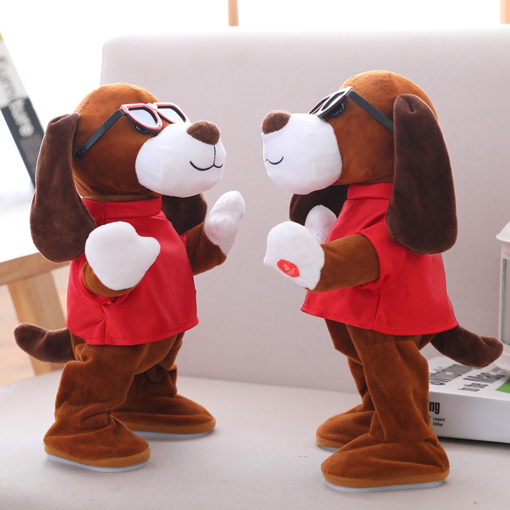 Electric Plush Pet Dogs Toys with Sunglasses Dog Stuffed Animal Plush Toy Singing Talking and Dancing Electronic Interactive Toy