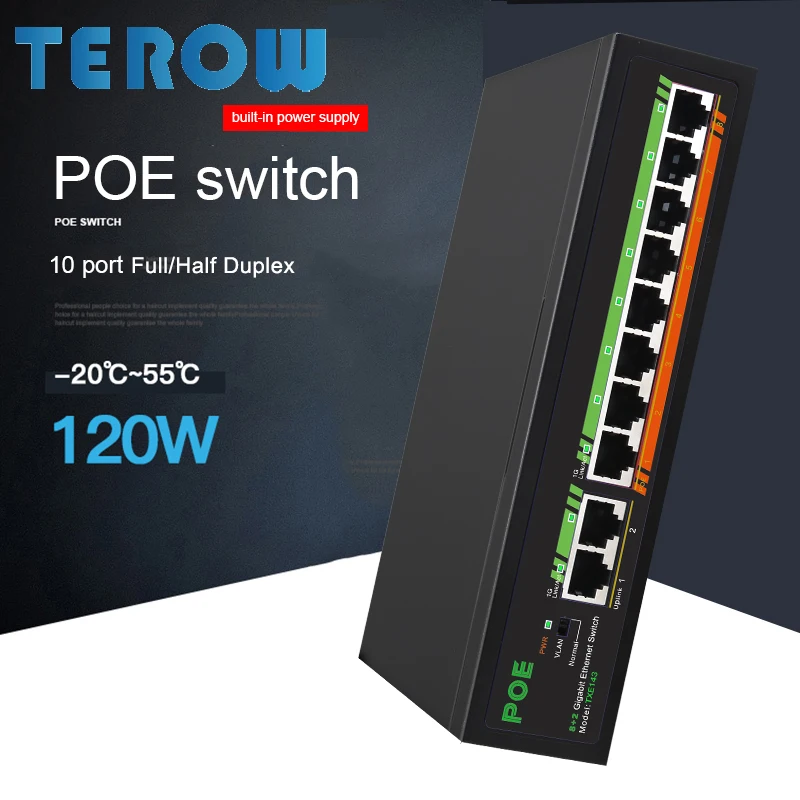 TEROW Gigabit 10 портов POE коммутатор 120 Вт 8 портов + 2-Uplinks 1000 м встроенный блок питания VLAN изолирует полный/полудуплекс Plug & Play