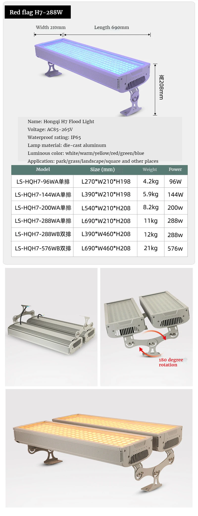 Область применения: внешнее освещение здания/ландшафтное освещение/внешняя стена отеля/квадратный ночной вид/садовое освещение и т. д.