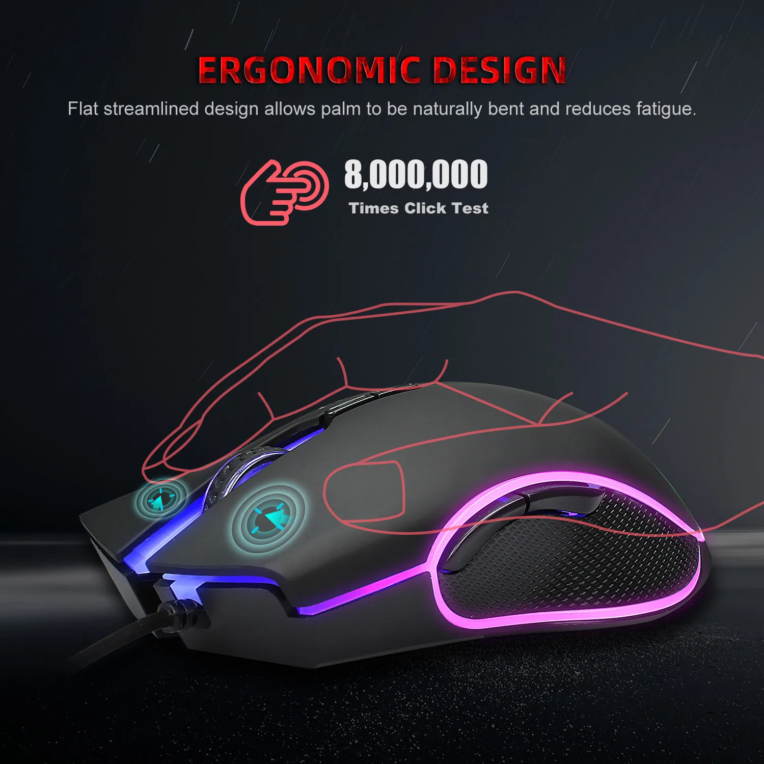 1. Регулируемый 1200 / 1600/ 2400 / 3200 точек/дюйм. 2. Эргономичный дизайн, Удобная ручка, длительное использование без усталости. 3. Интеллектуальное соединение, Подключи и работай. 4. Высококлассный переключатель, длинный Срок службы до 20 миллионов раз. 5. Есть 4 вида Цвет s меняет цвет в свою очередь, что дает вам яркий визуальный эффект. 6. Высококачественный игровой чип, Подходит для всех игровых игроков.Характеристики:
