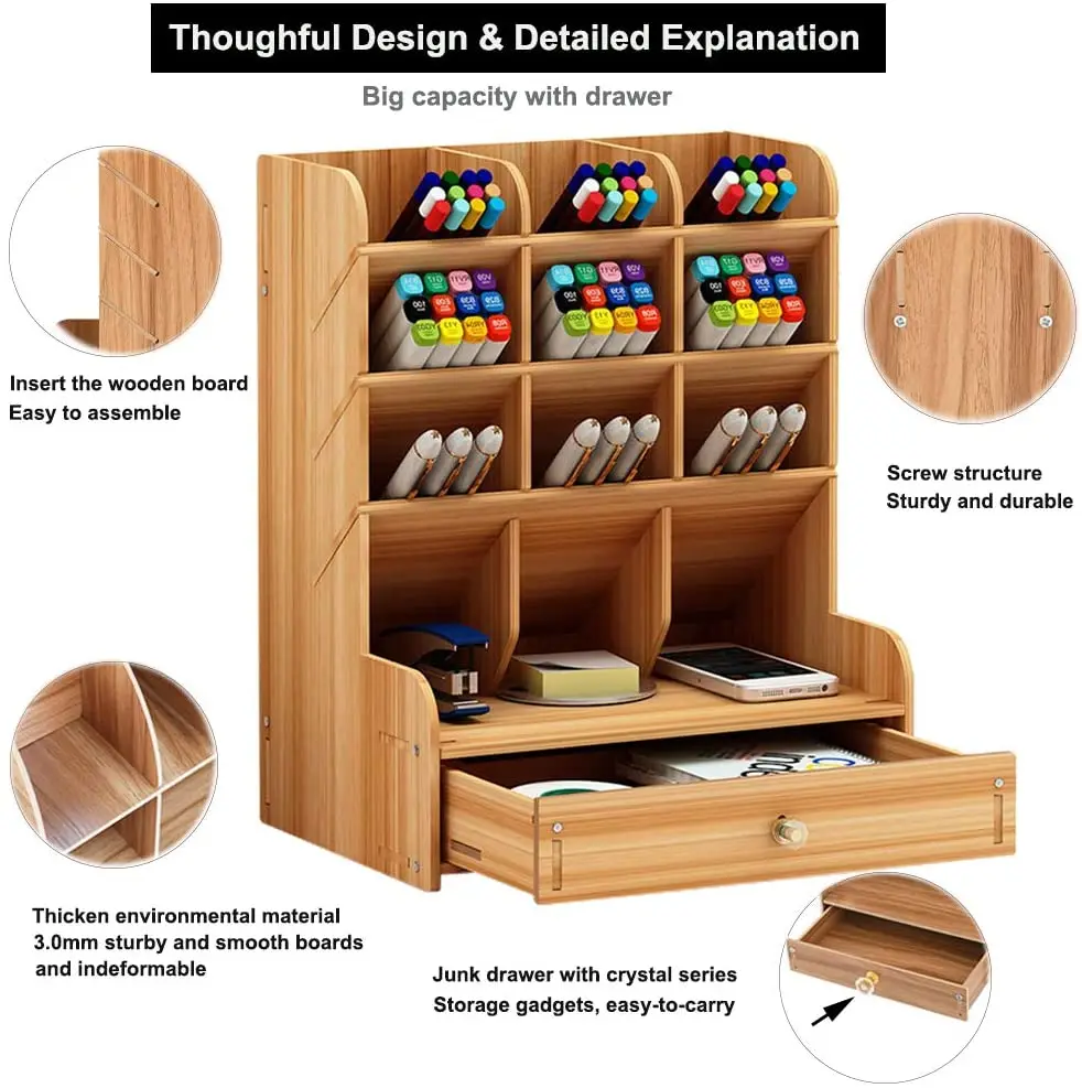 【Прочная и прочная Организация: Изготовлен из экологически чистых материалов для деревянных досок, прочная конструкция, безопасная и Нетоксичная. Собранный шимерный дизайн, прочный и долговечный. Превосходное мастерство со специально лакированной глянцевой поверхностью, Отличное ощущение прикосновения и забавный дизайн DIY делает его идеальным подарком на выбор. Настольная полка-органайзер легко моется и защищает от пыли и воды.