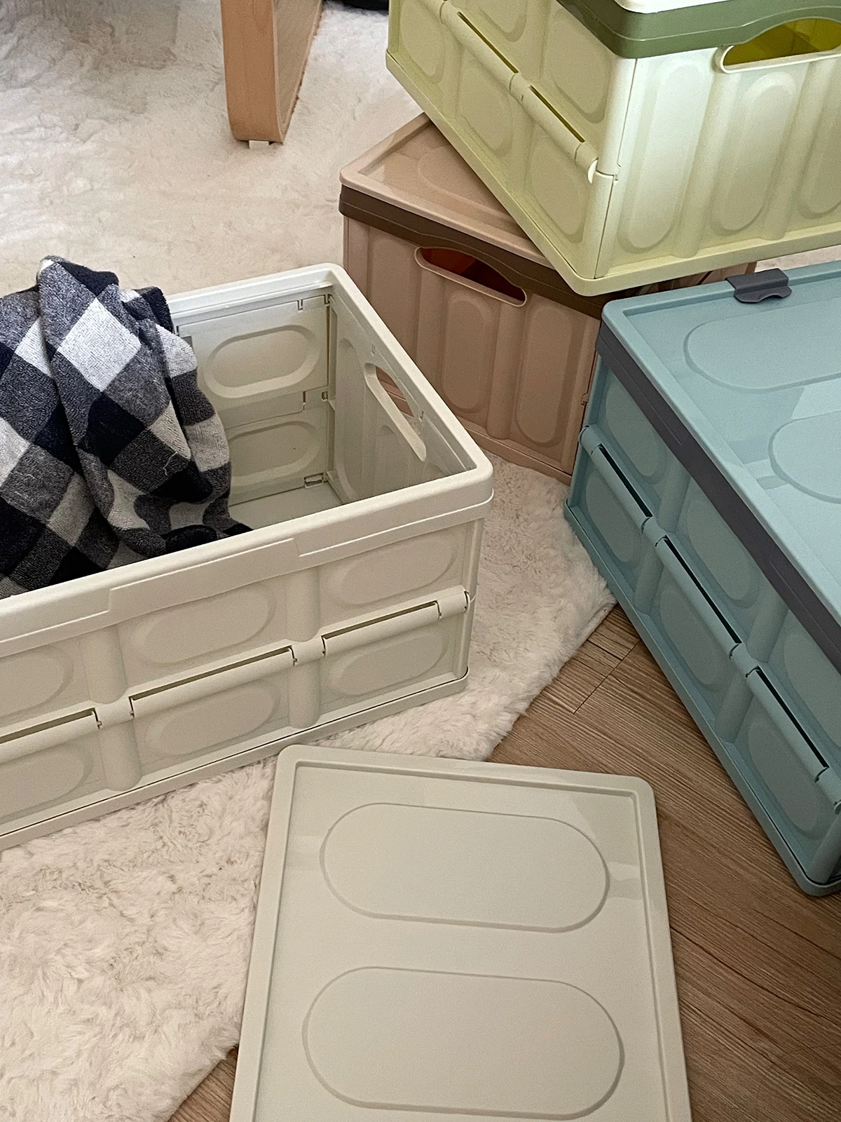 Этот ящик для хранения можно сложить. Вы можете открыть его и установить его самостоятельно, когда получите его. Очень хорошо хранить вещи