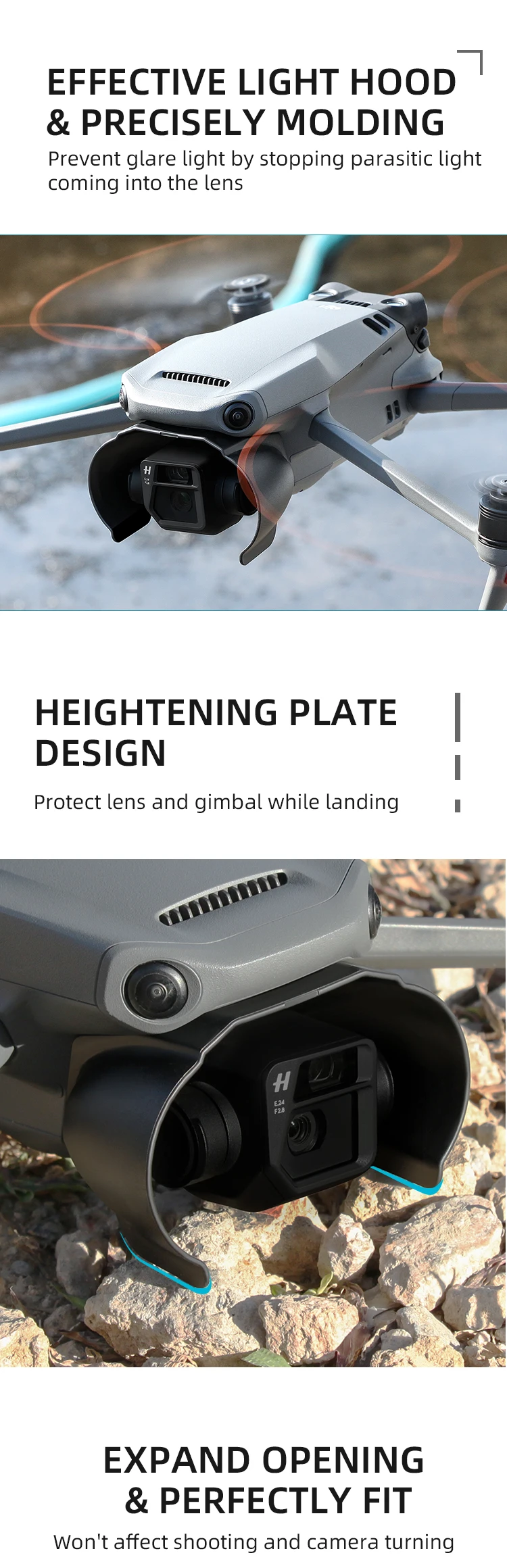 -Улучшенная конструкция пластины: защита объектива и карданного шарнира во время посадки.
