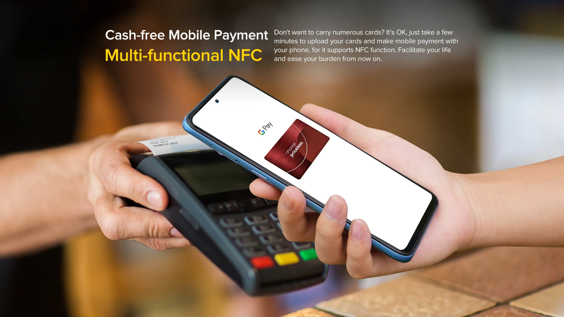 Многофункциональный NFCНе хотите носить с собой множество карт? Все в порядке, просто потратьте несколько минут, чтобы загрузить свои карты и сделать мобильный платеж с телефона, потому что он поддерживает функцию NFC. Облегчайте вашу жизнь и облегчайте нагрузку с этого момента.