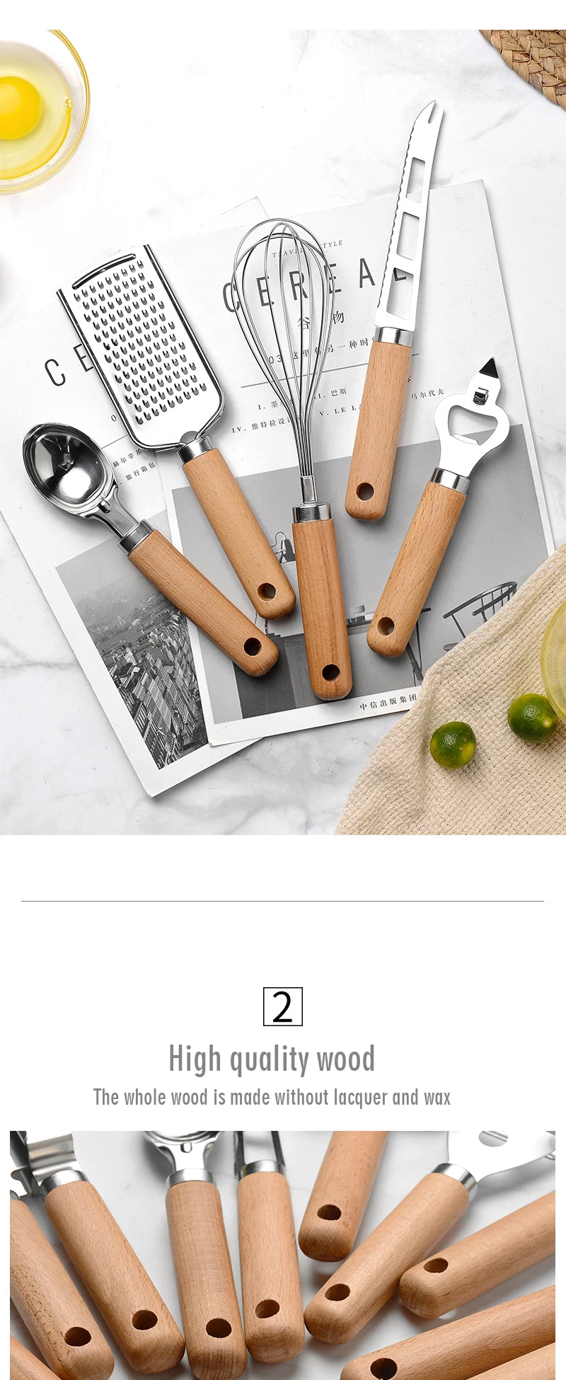 Набор кухонных гаджетов из 9 предметов с деревянной ручкой, нержавеющая сталь, бытовые разные предметы, консервный нож, комбинация кухонной утвари