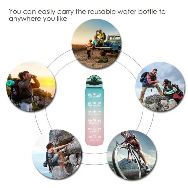 5. Идеальный выбор подарка: 1 л бутылка для воды имеет удобные часовые отметки времени, чтобы помочь вам увеличить ежедневное потребление воды. Эта отличная бутылка поставляется с различными яркими цветами и милыми узорами, которые являются лучшей идеей для себя, членов семьи, друзей, коллег, женщин и мужчин, которые наслаждаются здоровым образом жизни.