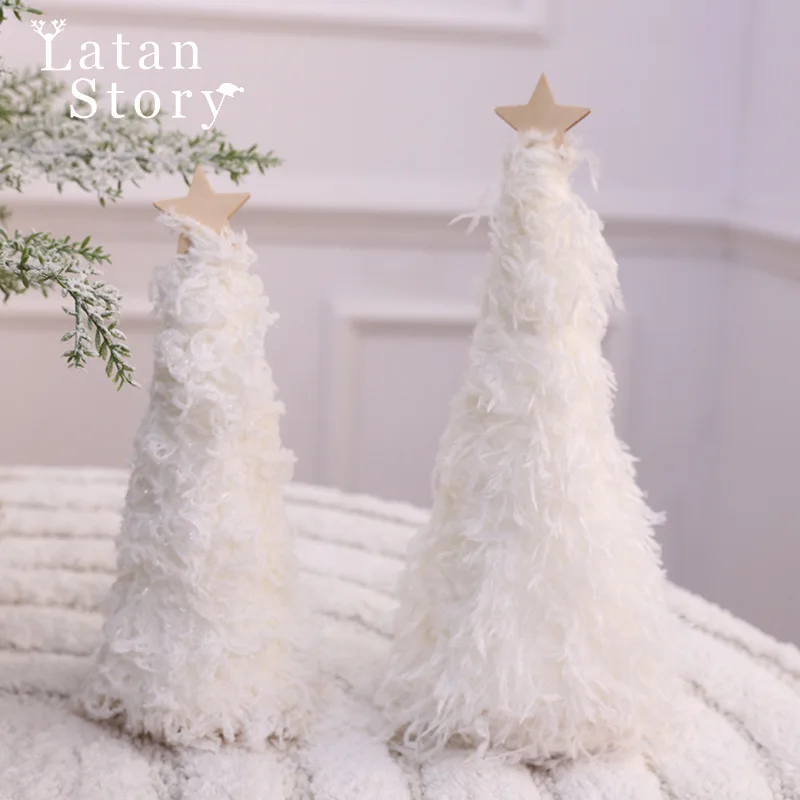 Рождественские праздничные украшения, розовые, серые, белые перья, звезды, Рождественская елка, украшение на окно, новогодние подарки для детей