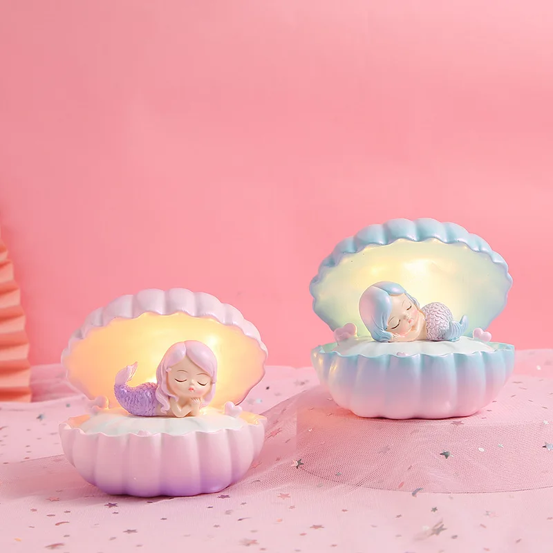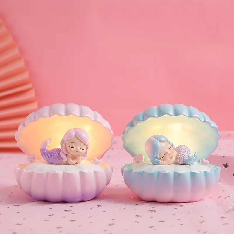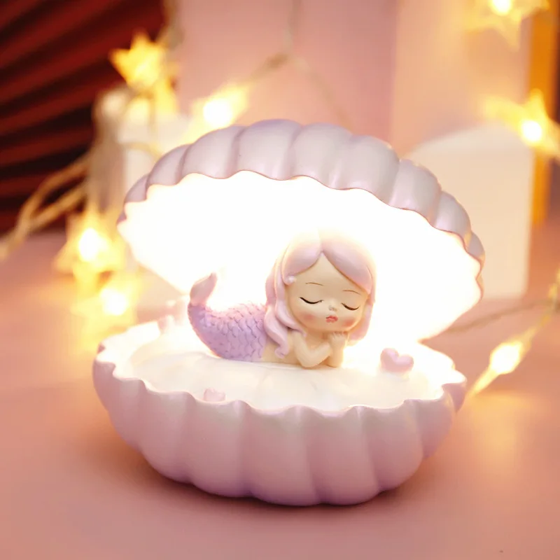 Сказочный светодиодный светильник в виде Русалочки, милый детский светильник в виде ракушки для спальни, декоративный светильник в средиземноморском стиле, подарок для девочек