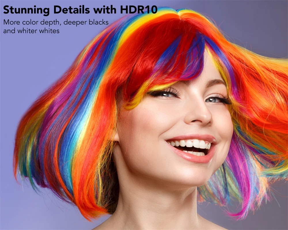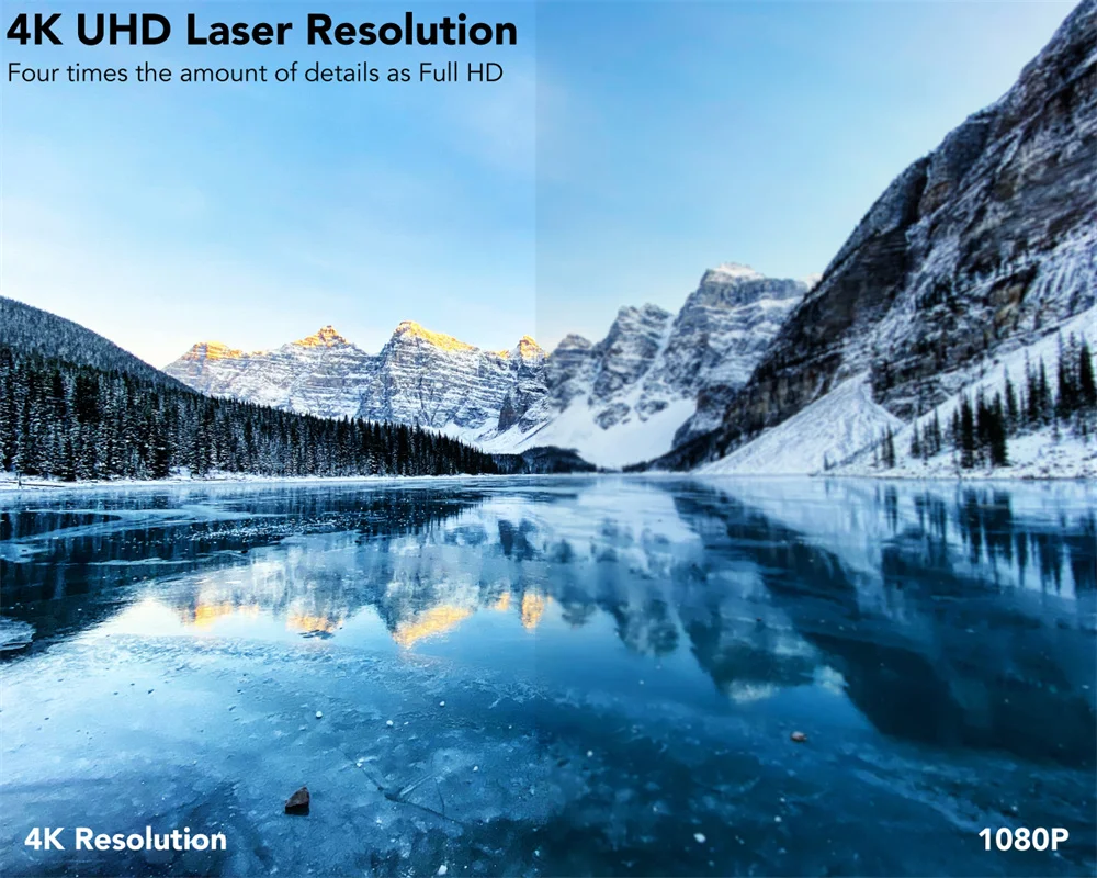 <4K UHD лазерный проектор>: Превосходное разрешение может быть заниженным. С 4K UHD и яркий 2100 ANSI люмен (5000 люмен светильник источник), вы получите 4x разрешение full HD или 1080p. Nova построен с лидирующей в отрасли запатентованной технологией ALPD 3,0 и TI DLP. Альпд позволяет использовать светильник более эффективно для более точных деталей в более широкой цветовой гамме и более глубоких вибраций для захватывающего разрешения видео. Коротковолновый проектор уменьшает напряжение глаз, рассеивая светильник, не теряя качество изображения.