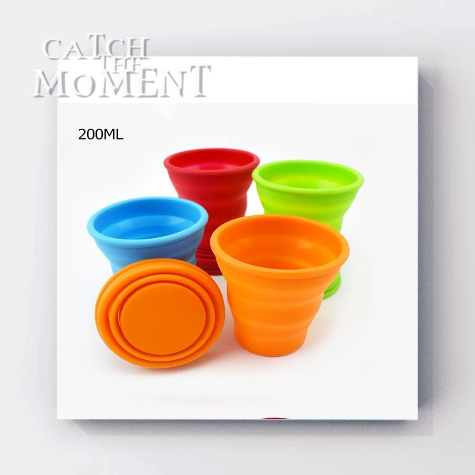 1Pc 200ml/240ml Portable Silicone Retractable Folding Cup With Lid Telescopic Collapsible Drinking Cup Outdoor Travel Water Cup
