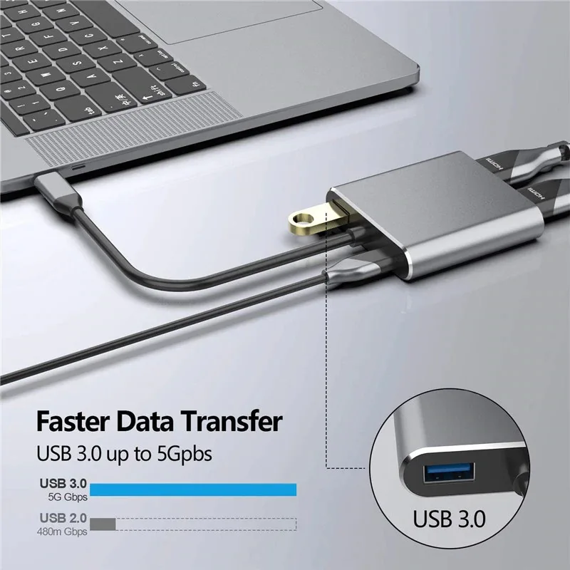Яркая синхронизация видео с 3d-эффектом. Преобразует USB-C в адаптер, совместимый с HDMI, напрямую и стабильно при разрешении до 4K (3840 × 2160 @ 30 Гц). Позволяет зеркало или расширить USB-C устройства до HDMI высокой четкости-включить HDTV/монитор/проектор/переключатель и другие дисплеи.!