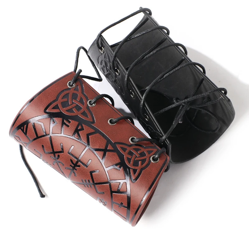 Символ Одина рун широкий браслет скандинавский Викинг Компас панк Волчья Голова кожаный браслет мужские манжеты браслет ювелирные изделия