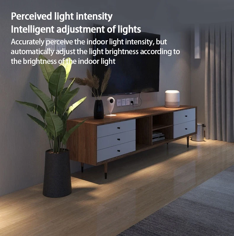 Accurately perceive the indoor light intensity, Qinger automatically adjusts the brightness of the light according to the brightness of the indoor light, controls the light switch, and through radar detection, it is truly realized that the lights are on and the lights are off when people are walking.