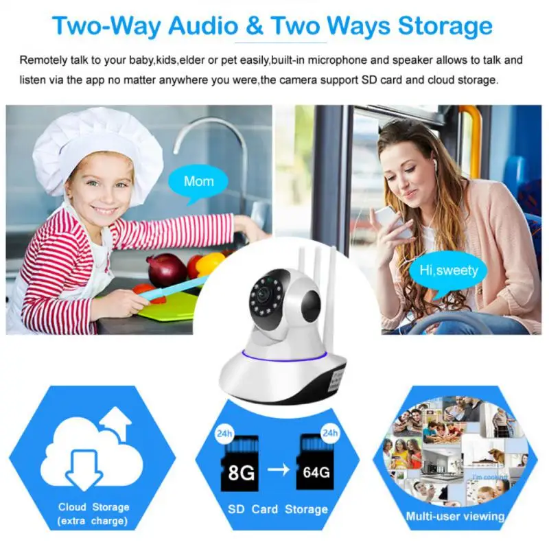 【Интеллектуальное Обнаружение движения 】поддерживает Интеллектуальное обнаружение движения, которое будет разумно идентифицировать человеческую активность, такую как обнаружение движения и человеческого лица и человеческого тела, при обнаружении движения, оповещение будет отправлено на ваш телефон в режиме реального времени. Вы можете дистанционно контролировать свой дом/офис/магазин/питомца/ребенка и т. Д. Через приложение, когда вы находитесь на улице.