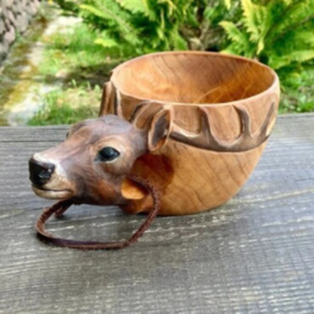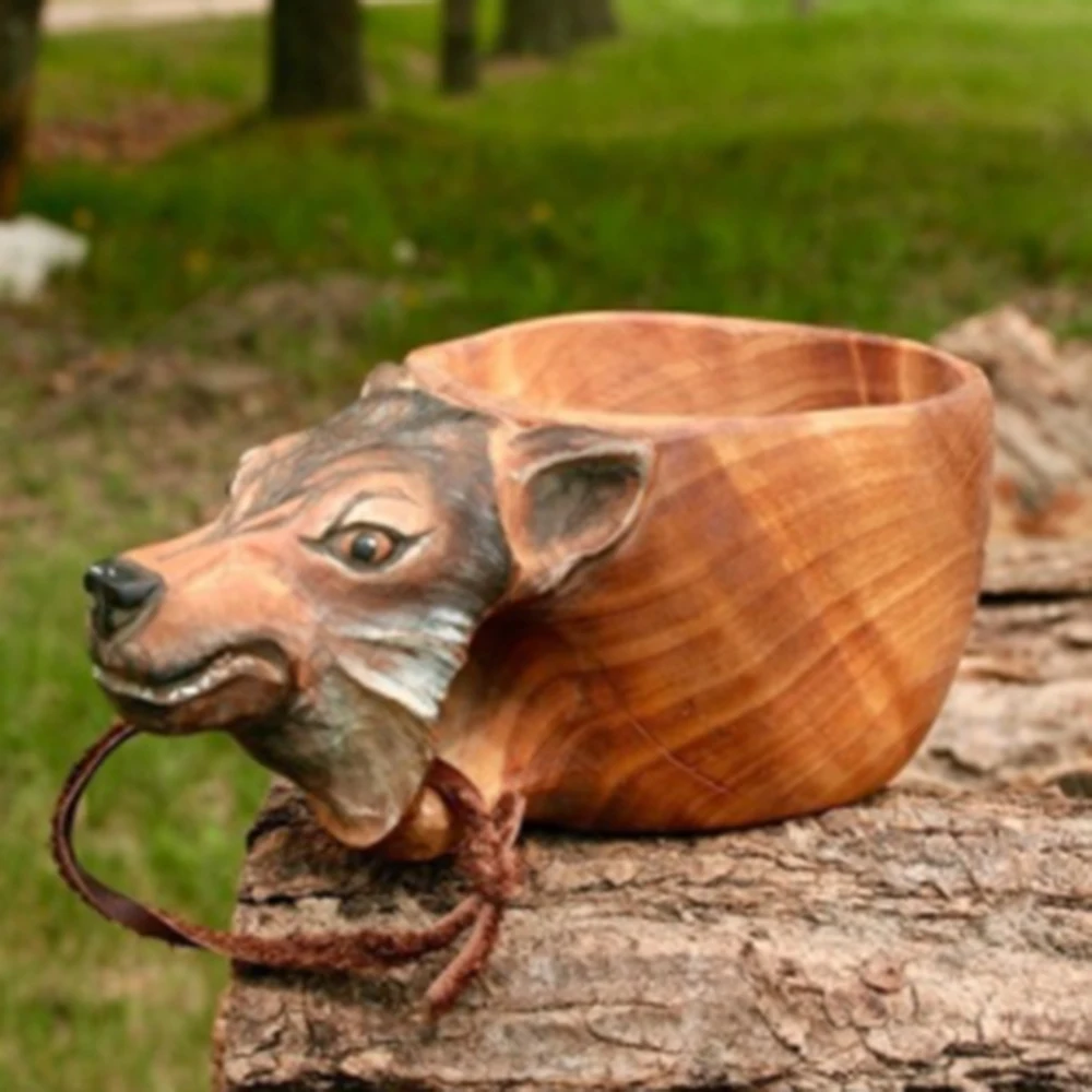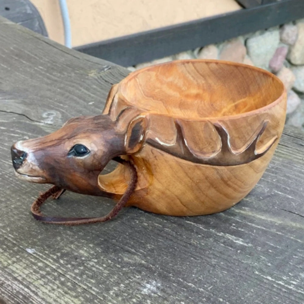 Деревянная чашка для питья креативная в форме животного кружка портативная чашка для питья для кемпинга ручная резная напольная чашка с ремешком