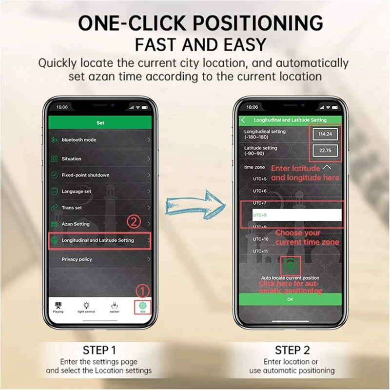 Примечание: светильник и различные дисплеи могут привести к тому, что цвет товара на картинке немного отличается от реального. Допускается погрешность в измерениях +/- 1-3 см. 1. Играйте в любой Коран, нажав кнопку на пульте дистанционного управления, управление приложением (необходимо загрузить приложение, открыть соединение Bluetooth внутри приложения, вы можете выбрать, чтобы играть больше функций)