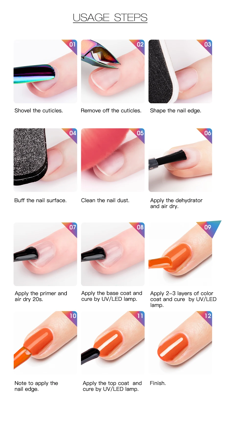 9. Нанесите 2-3 слоя цветного покрытия и закрепите УФ/светодиодной лампой.