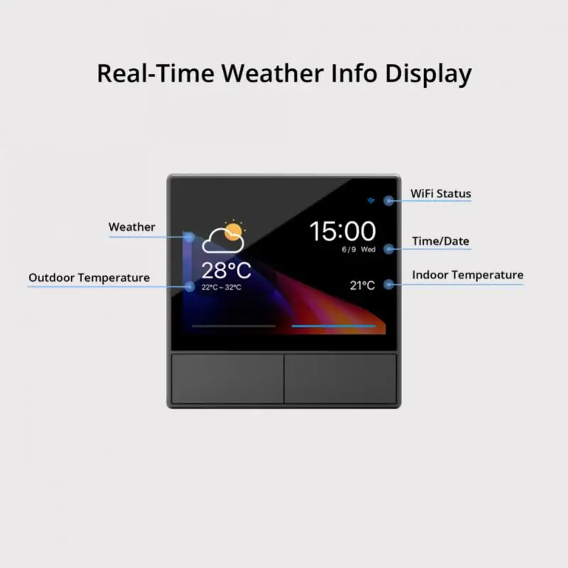 【Узнайте время и атмосферостойкость с встроенными датчиками и подключением Wi-Fi, настенный выключатель NSPanel smart scene может обновлять погоду в реальном времени, температуру в помещении, температуру на открытом воздухе, время и дату
