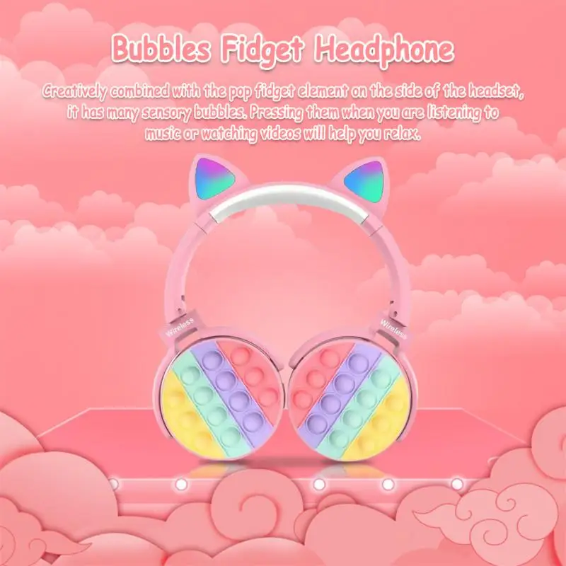 Bubbles Fidget Headphone-Creatively combined with the pop fidget element on the side of the headset, it has many sensory bubbles. Pressing them when you are listening to music or watching videos will help you relax. An excellent BT headset and the perfect stress-relieving toy for you.