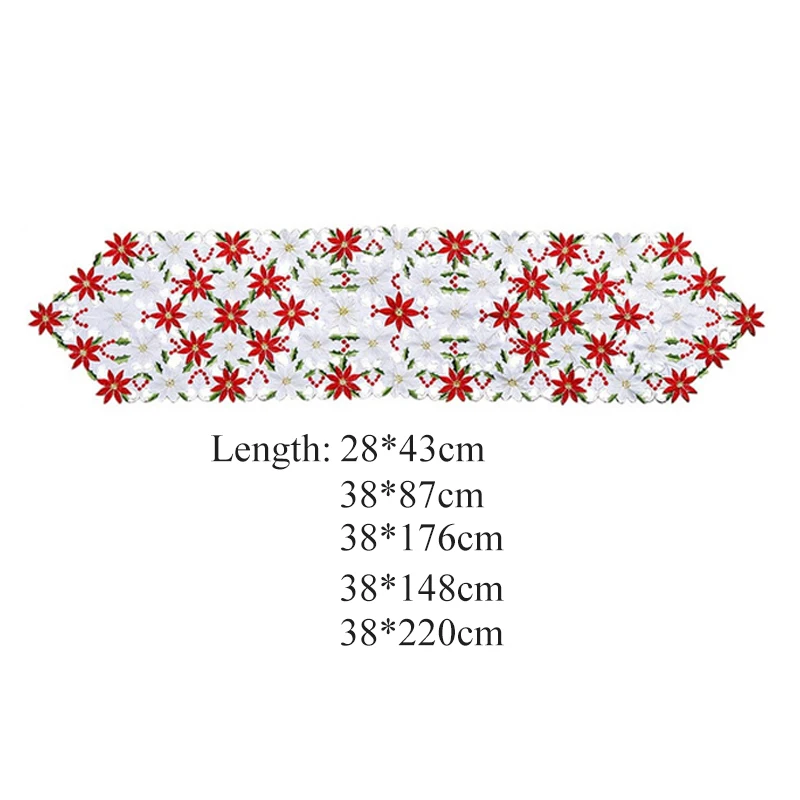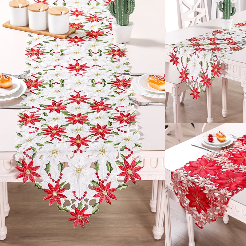 Праздничная Рождественская настольная дорожка с цветочной вышивкой, домашний обеденный стол