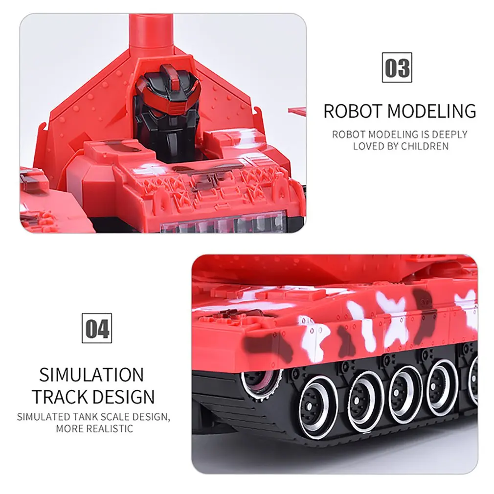 3. Больше удовольствия: может быть преобразован в робота, вперед, назад, влево, вправо, светильник, музыка может быть переключена, до трансформации танка, после Трансформации Робота можно дистанционно управлять ходьбой.