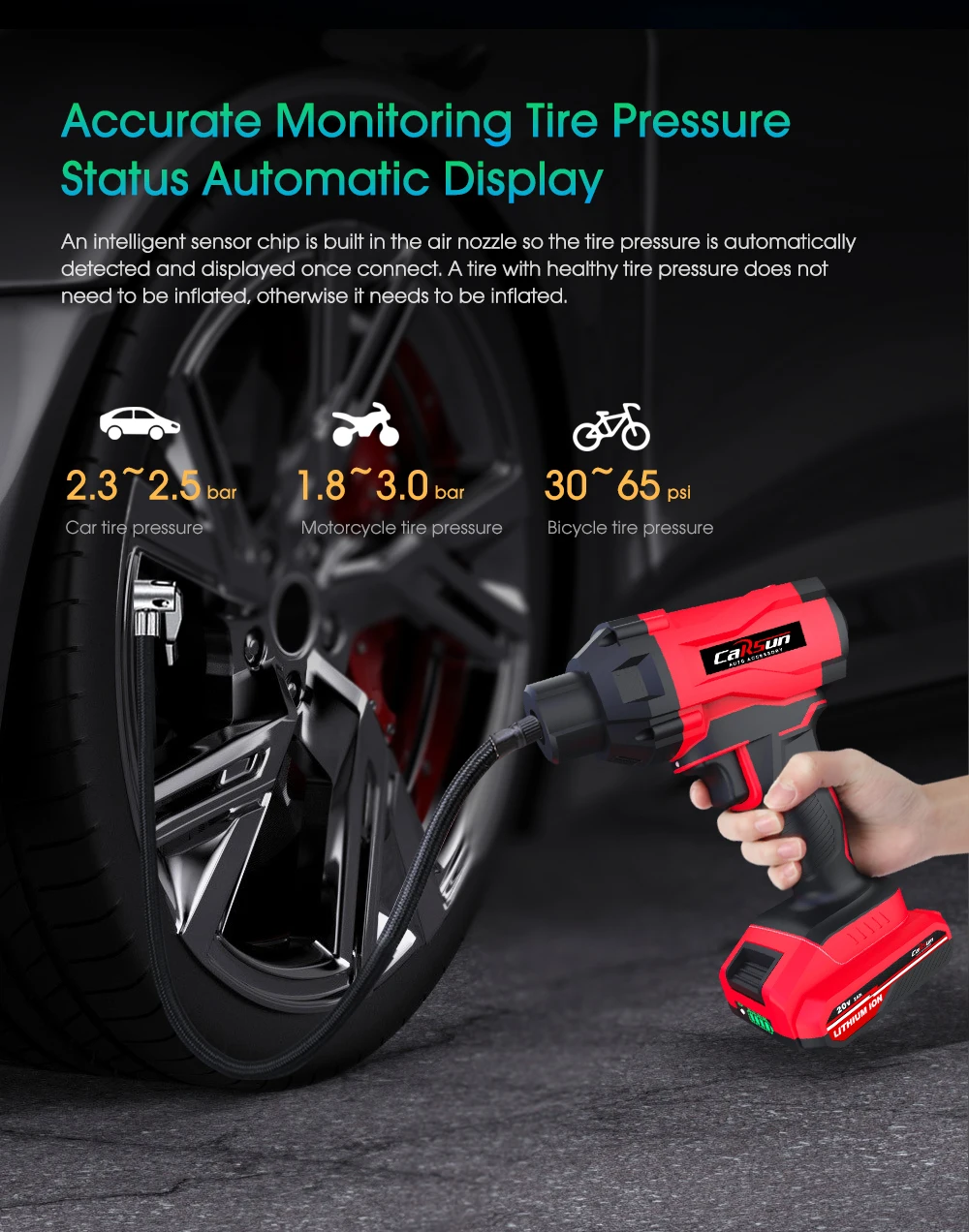 CARSUN автомобильный воздушный насос беспроводной надувной насос портативный ручной перезаряжаемый воздушный компрессор Цифровой Автомобильный автоматический насос для шин