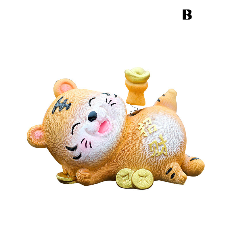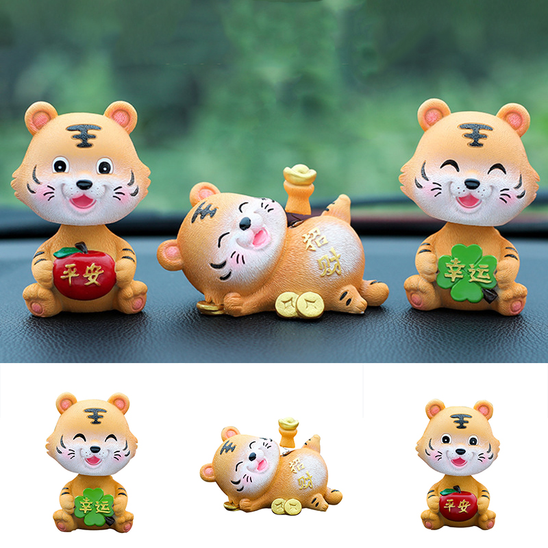 Автомобильное украшение для приборной доски с мультяшным тигром, кукольная мини-Статуэтка с клейкой подошвой, китайский Декор зодиака