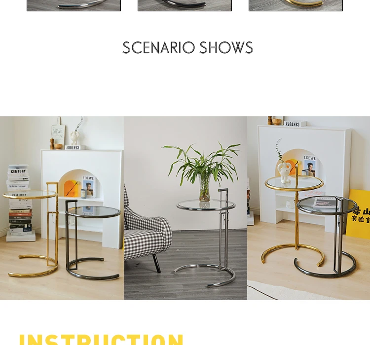8. Детали: ① регулируемая высота, и высота журнального столика может быть скорректирована в соответствии с требованием, что удобно, практично и безопасно. Высота регулируется 67-91 см. ② Основание из нержавеющей стали, большая Нижняя контактная зона и сильная несущая способность. ③ Круглый подъемный поручень может регулировать высоту вверх и вниз, удерживая ручку, и пряжка может быть прочно вставлена.