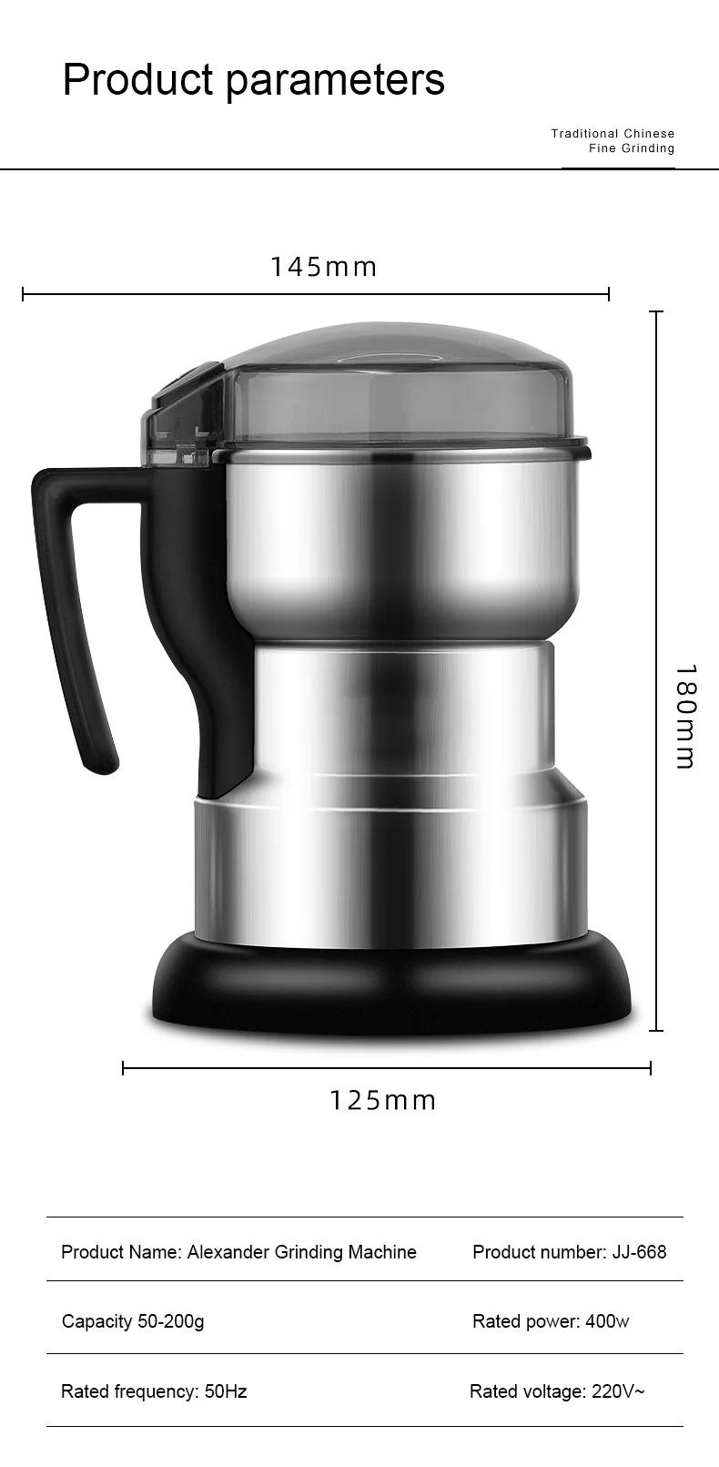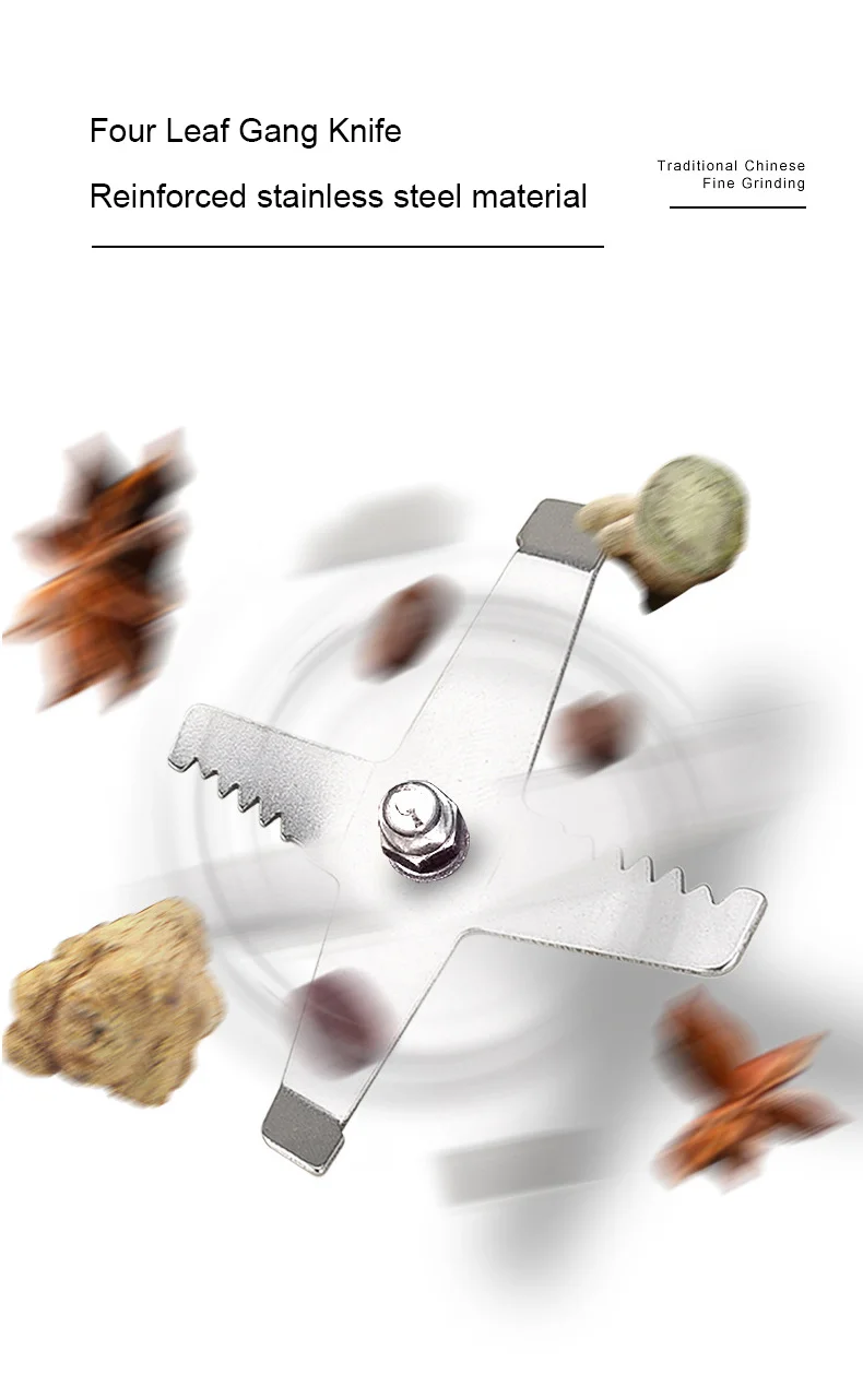 It does not support moisture-containing materials, vegetables, fruits, meat, dried meat bones, maca, woody medicinal materials, tree roots, and branches. [Sesame, walnuts, peanuts, these oily materials, it is recommended to stir and grind. The purpose of stir-frying is to reduce the amount of oil, and the grinding effect is also the best]