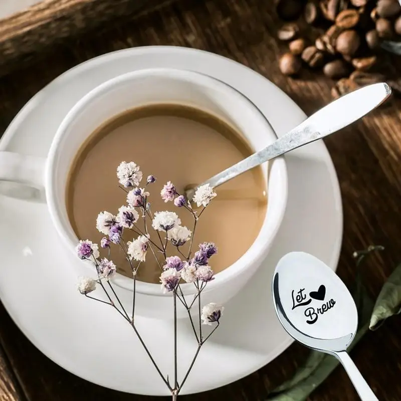 1. Лучший подарок: ложка с длинной ручкой из нержавеющей стали, Выгравированная разными буквами, которая может быть предоставлена любителям, друзьям и семье. Лучший подарок, чтобы выразить любовь.